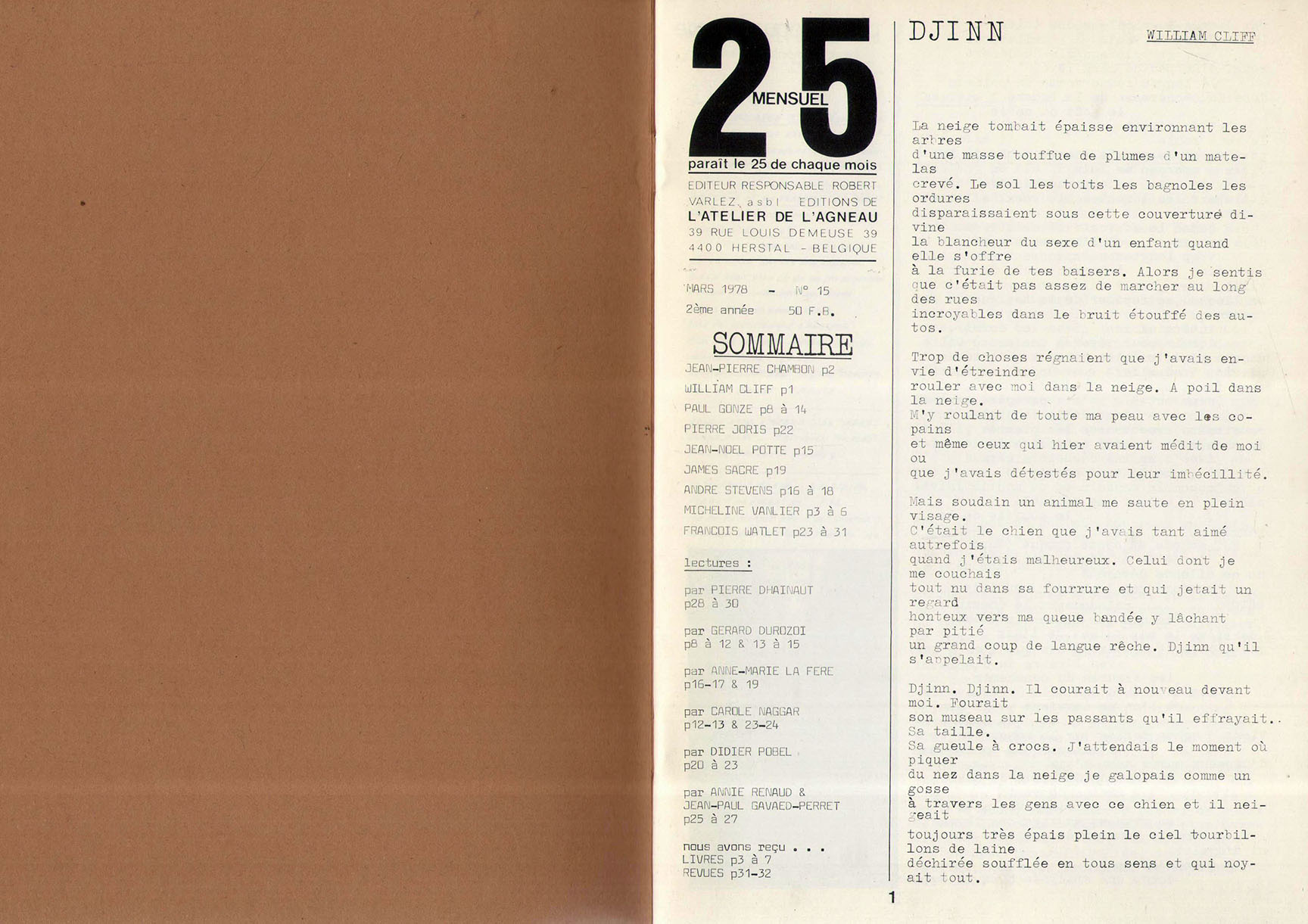 A5 36 pages → Offset ↪ B ↪ Ougrée Parution en mars 1978Mensuel 25 n°15 Numerisation : Oui (300 dpi) Collection privée PLUS MOINS