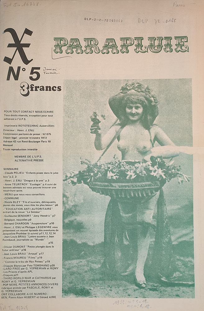 Mégazine 31 x 44 cm 20 pages → Offset ↪ FR ↪ Paris Parution en janvier 1972Parapluie n°5 Numerisation : Oui (300 dpi) Collection BNF PLUS MOINS