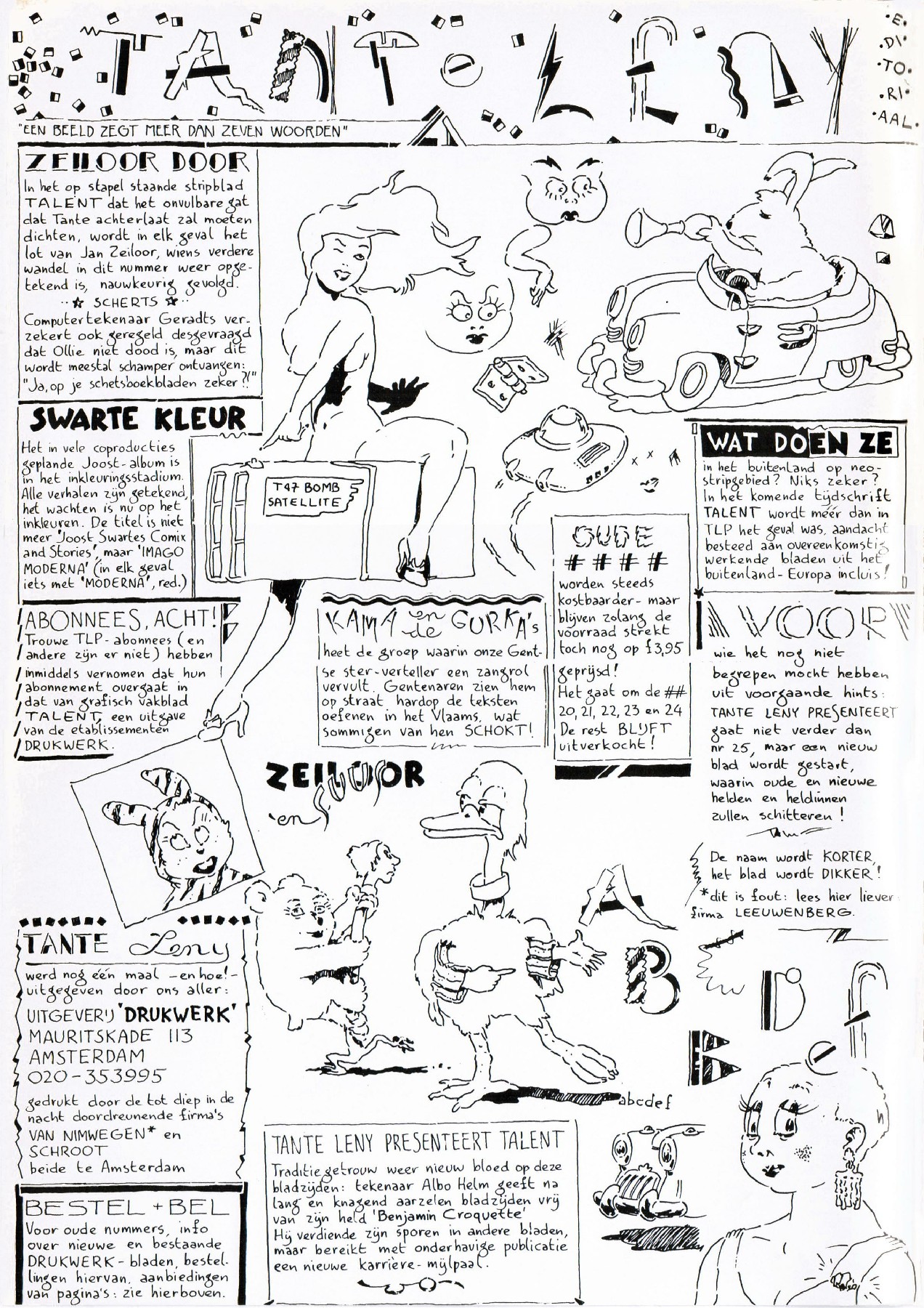 Comic 16 x 22 cm 40 pages → Offset ↪ NL ↪ La Haye Parution en 1978Tante Leny presenteert n°25 Numerisation : Oui (150 dpi) En ligne sur archive.org PLUS MOINS