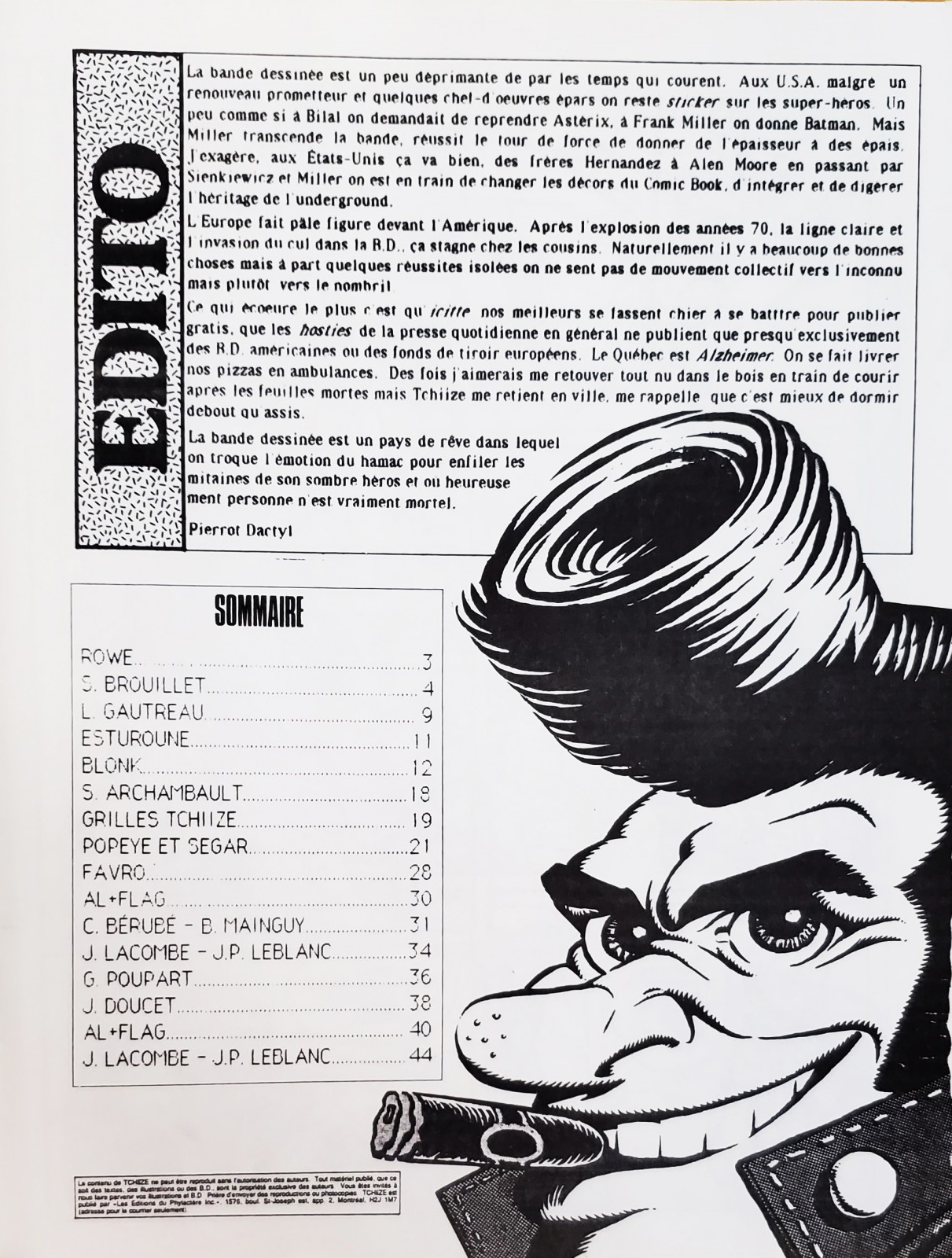 21.5 x 28 cm 44 pages → Offset ↪ QC ↪ Montréal Parution en 1986Tchiize n°3 bis Numerisation : Oui (150 dpi) Collection Banq Montréal PLUS MOINS