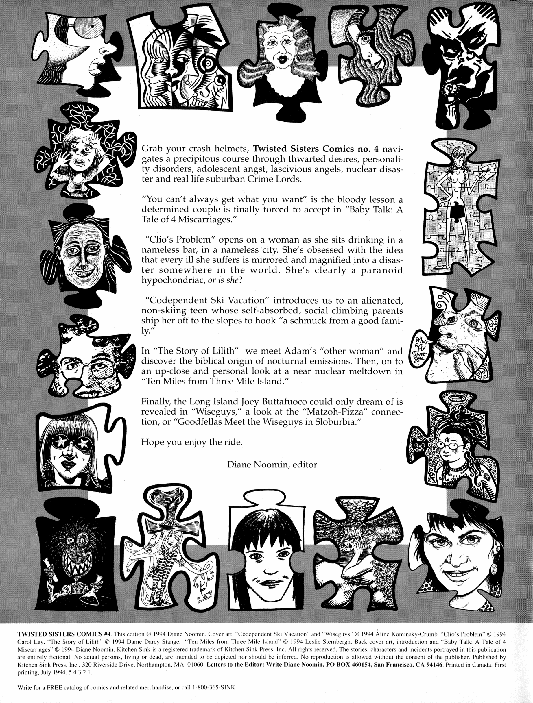 Comic 21.4 x 27.9 cm 44 pages → Offset ↪ US ↪ Princeton Parution en juillet 1994Twisted Sisters n°4 Numerisation : Oui (150 dpi) Edition Kitchen Sink En ligne sur archive.org PLUS MOINS
