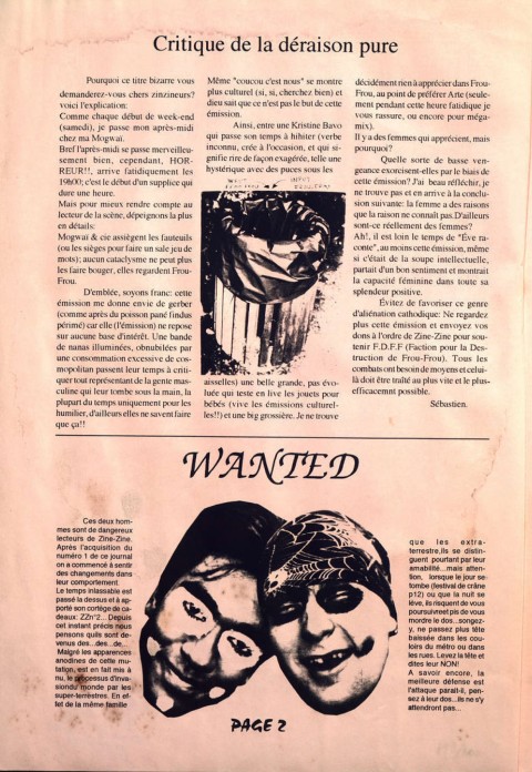 A4 → Photocopie NB ↪ FR ↪ 94 ↪ Saint-Maur Parution en decembre 1993Zine Zine n°3 Numerisation : Oui (150 dpi) En ligne sur Fanzinothèque.fr PLUS MOINS