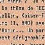 Graphzine de Dusseldorf (Allemagne) du milieu des années 80 auquel plusieurs français ont participé (Bruno Richard, Krabs, Y5/P5, Kahyène, Lombardi, Françoise Duvivier...) et des allemands dont Infrarot et Frankie l'amour de Dusseldorf qui y est le plus présent et qui doit être le responsable de l'édition. Au moins 9 numéros mais un seul connu pour le moment, le 9!