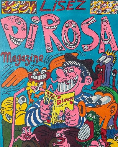 Pilier de la figuration libre, il a commencé par éditer la revue Bato avec Robert Combas début des 80's, puis Di Rosa Magazine à partir de 1985. Publié dans Charlie Mensuel et Sandwich dès 1980 et édité par le Dernier Terrain Vague en 1983, dans Zoulou en 1984, Croquemitaine de l'APAAR en 1985, signe une cover pour Nineteen en 1987 mais surtout des lithos, des sérigraphies, de la pub et des expos un peu partout... A noter son portrait dans A suivre n°130 en 1988 et une interview dans Combo n°8 en 1991. Il crée le Miam à Sète en 2000 et bien des choses depuis...