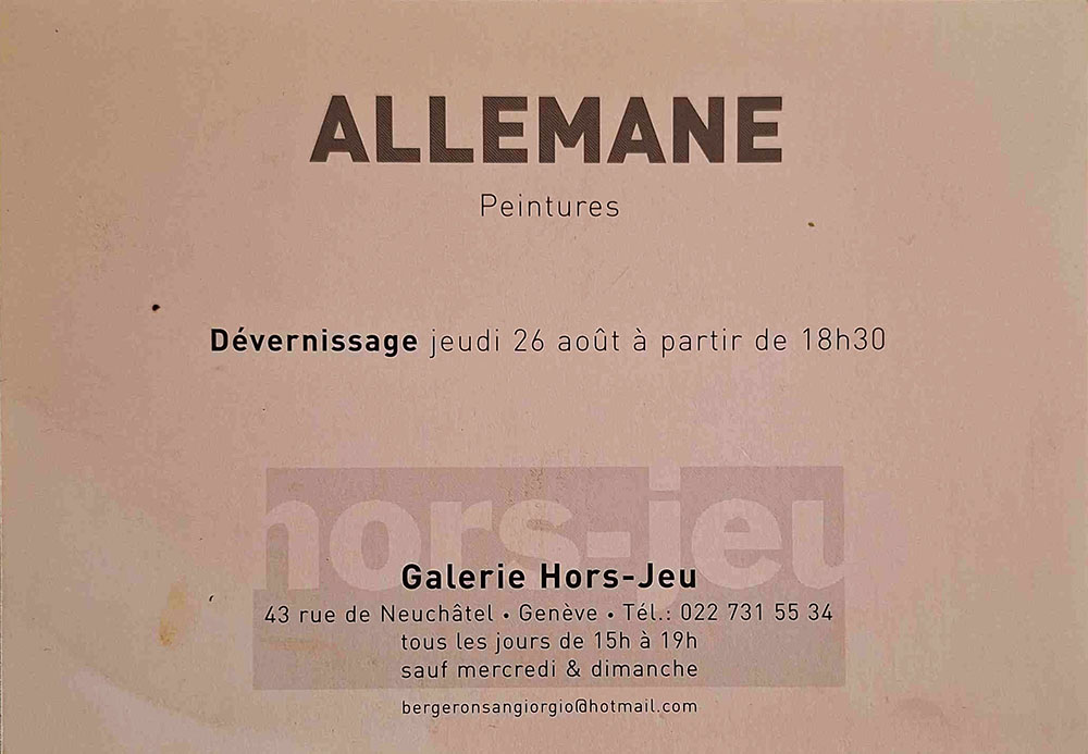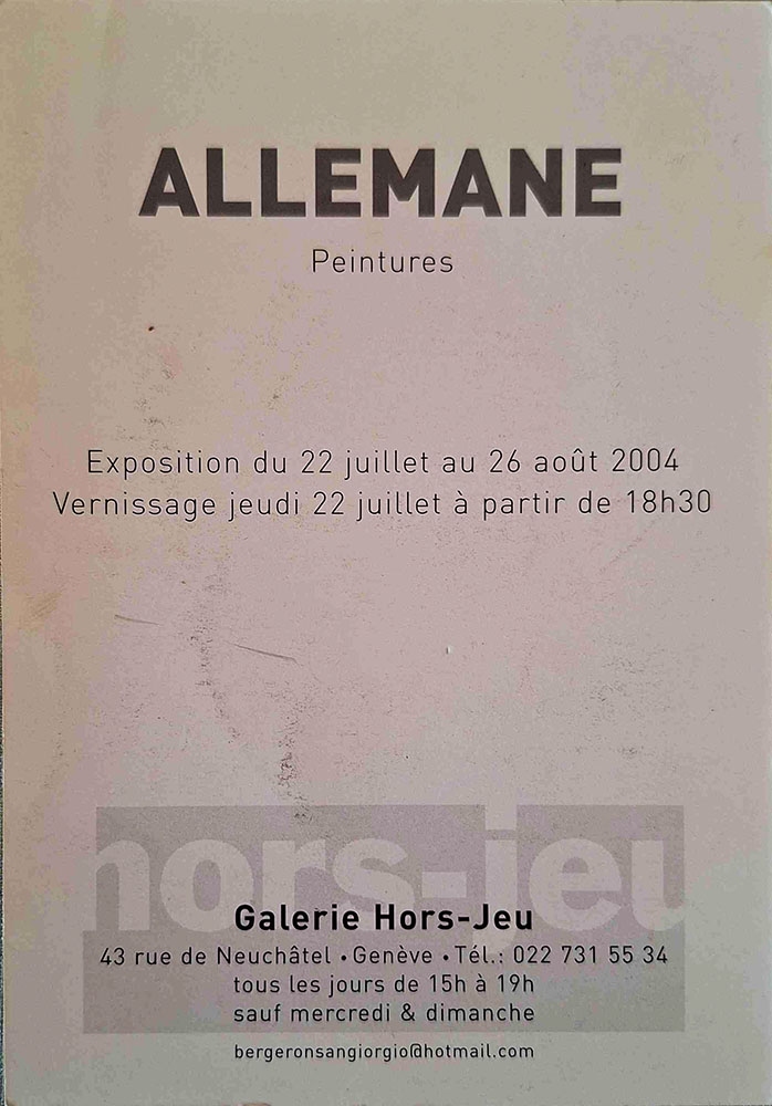 A6 4 pages → Offset ↪ CH ↪ Genève Parution en juillet 2004Galerie Hors-Jeu par : Allemane (Olivier) Numerisation : Oui (150 dpi) Collection privée PLUS MOINS