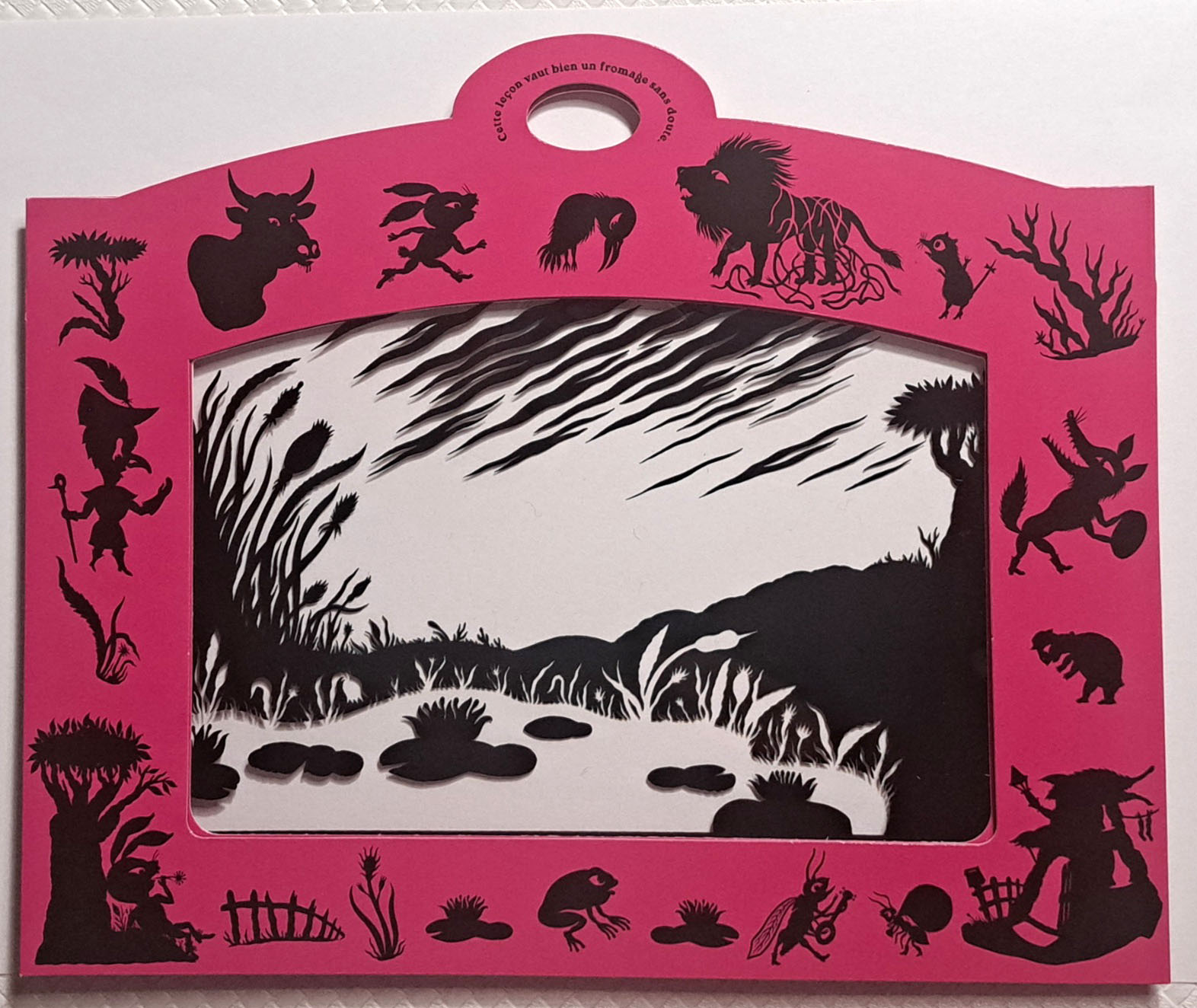 Coffret avec théâtre d'ombre et livret 13,2 x 18,7 cms.