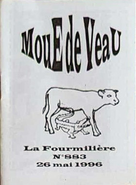 A7 16 pages → Photocopie NB ↪ FR ↪ 62 Parution en mai 1996Moue de Veau n°883 (La Fourmilière) par : Suel (Lucien) Auto édition Numerisation : Non En recherche PLUS MOINS