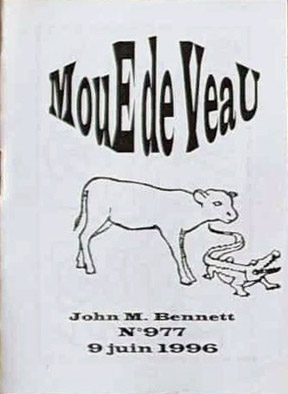 A7 16 pages → Photocopie NB ↪ FR ↪ 62 Parution en juin 1996Moue de Veau n°977 (John M Bennet) par : Suel (Lucien) Auto édition Numerisation : Non En recherche PLUS MOINS