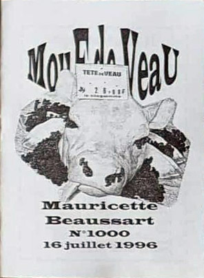 A7 16 pages → Photocopie NB ↪ FR ↪ 62 Parution en juillet 1996Moue de Veau n°1000 (Mauricette Beaussart) par : Suel (Lucien) Auto édition Numerisation : Non En recherche PLUS MOINS