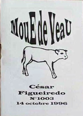 A7 16 pages → Photocopie NB ↪ FR ↪ 62 Parution en octobre 1996Moue de Veau n°1003 (César Figueiredo) par : Suel (Lucien) Auto édition Numerisation : Non En recherche PLUS MOINS