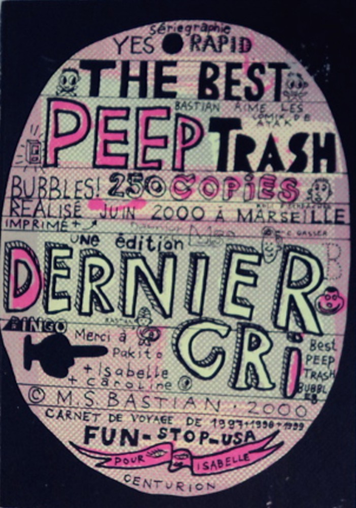 15.5 x 22 cm 160 pages → Sérigraphie 500 exemplaires ↪ FR ↪ 13 ↪ Marseille Parution en 2000The Best Peep Trash par : MS Bastian chez : Le Dernier Cri Numerisation : Non En recherche PLUS MOINS