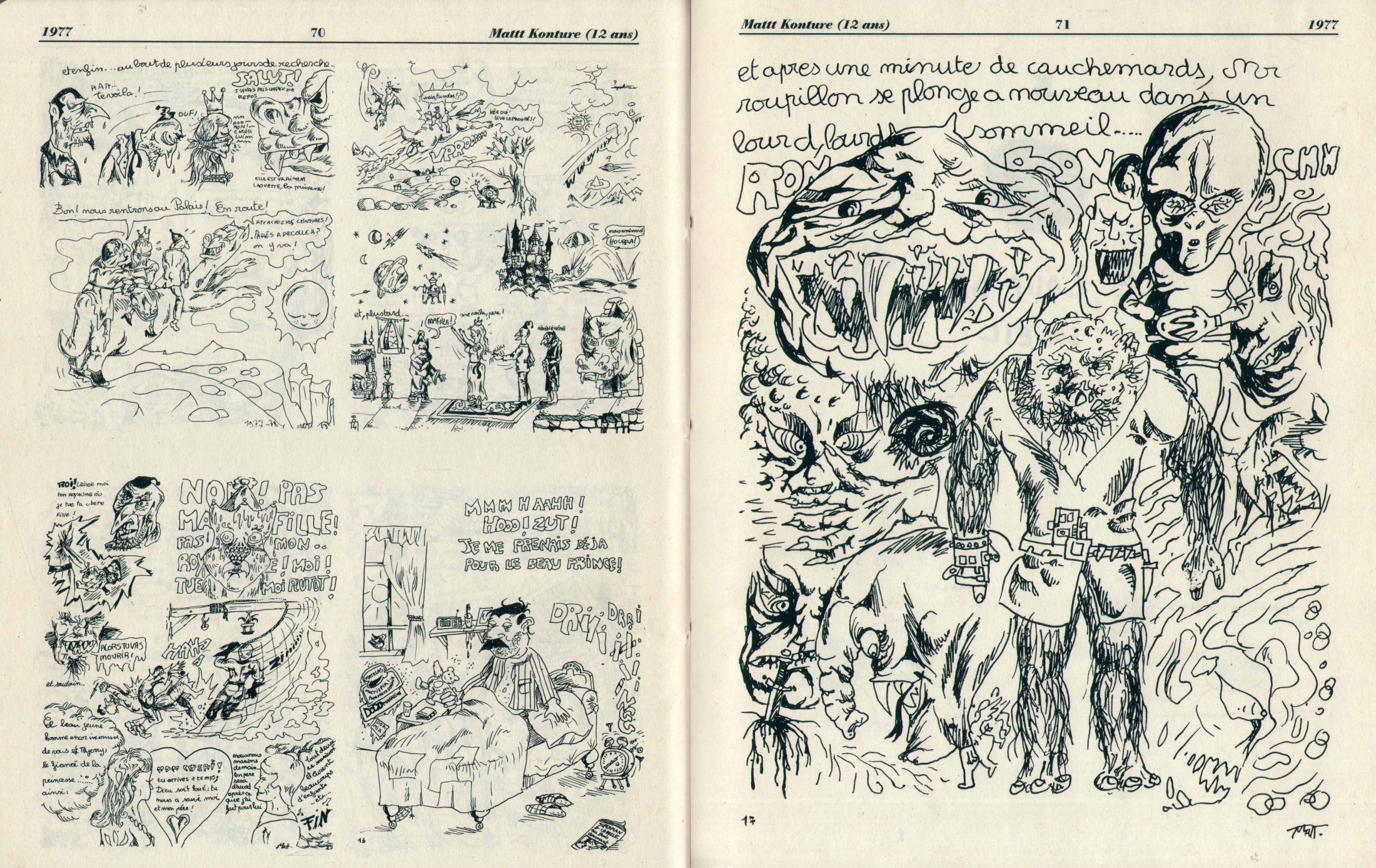 Cahier d’écolier qui propose des bandes dessinées des principaux auteurs de L’Association réalisées entre l’âge de 5 et 12 ans.