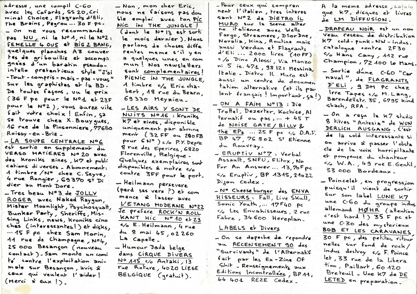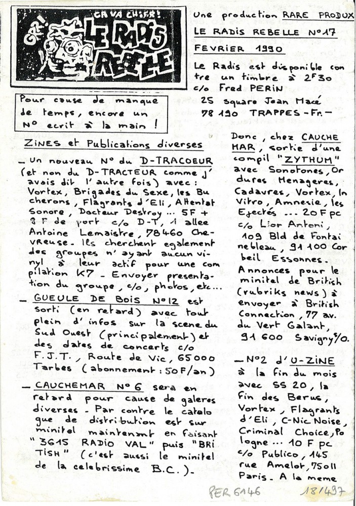 A5 4 pages → Photocopie NB ↪ FR ↪ 78 ↪ Trappes Parution en fevrier 1990Radis Rebelle n°17 Numerisation : Oui (300 dpi) Sans commentaire (pour le moment). PLUS MOINS