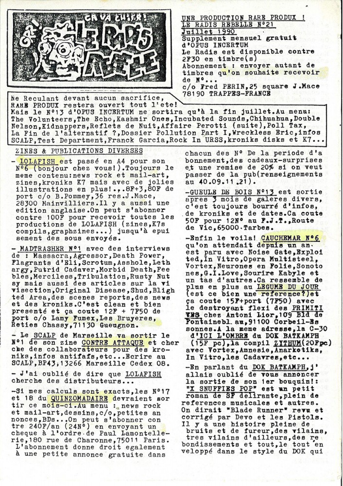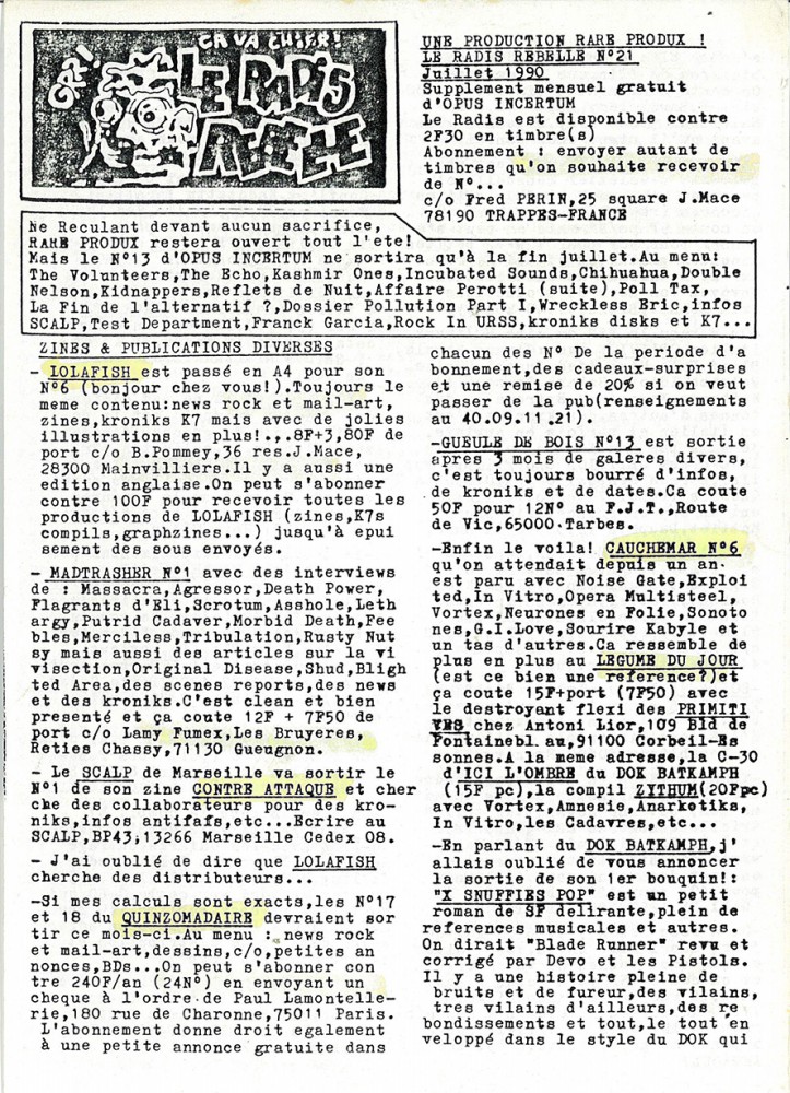 A5 4 pages → Photocopie NB ↪ FR ↪ 78 ↪ Trappes Parution en juillet 1990Radis Rebelle n°21 Numerisation : Oui (300 dpi) Collection Fanzinothèque de Poitiers PLUS MOINS
