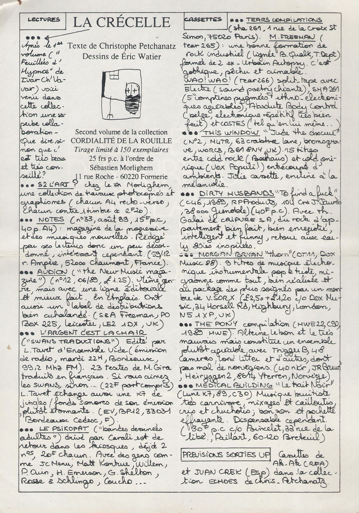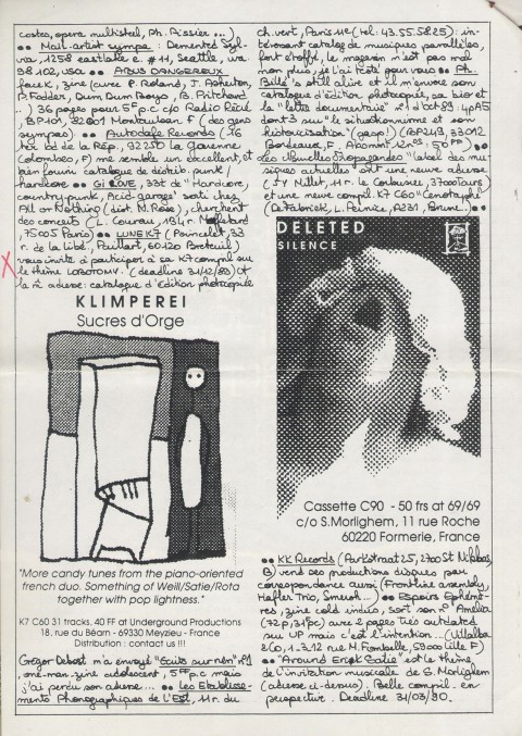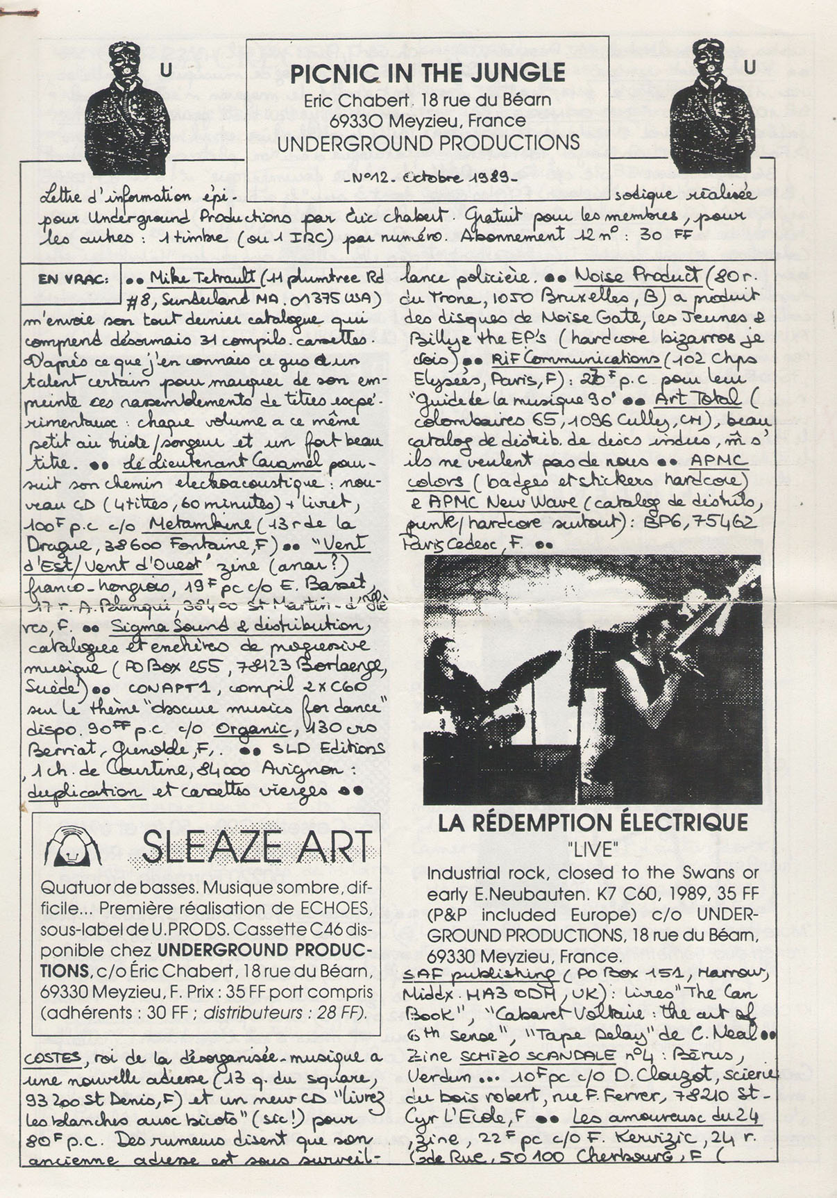 A4 3 pages → Photocopie NB ↪ FR ↪ 69 ↪ Meyzieu Parution en octobre 1989Picnic In The Jungle n°12 Numerisation : Oui (300 dpi) Collection privée PLUS MOINS