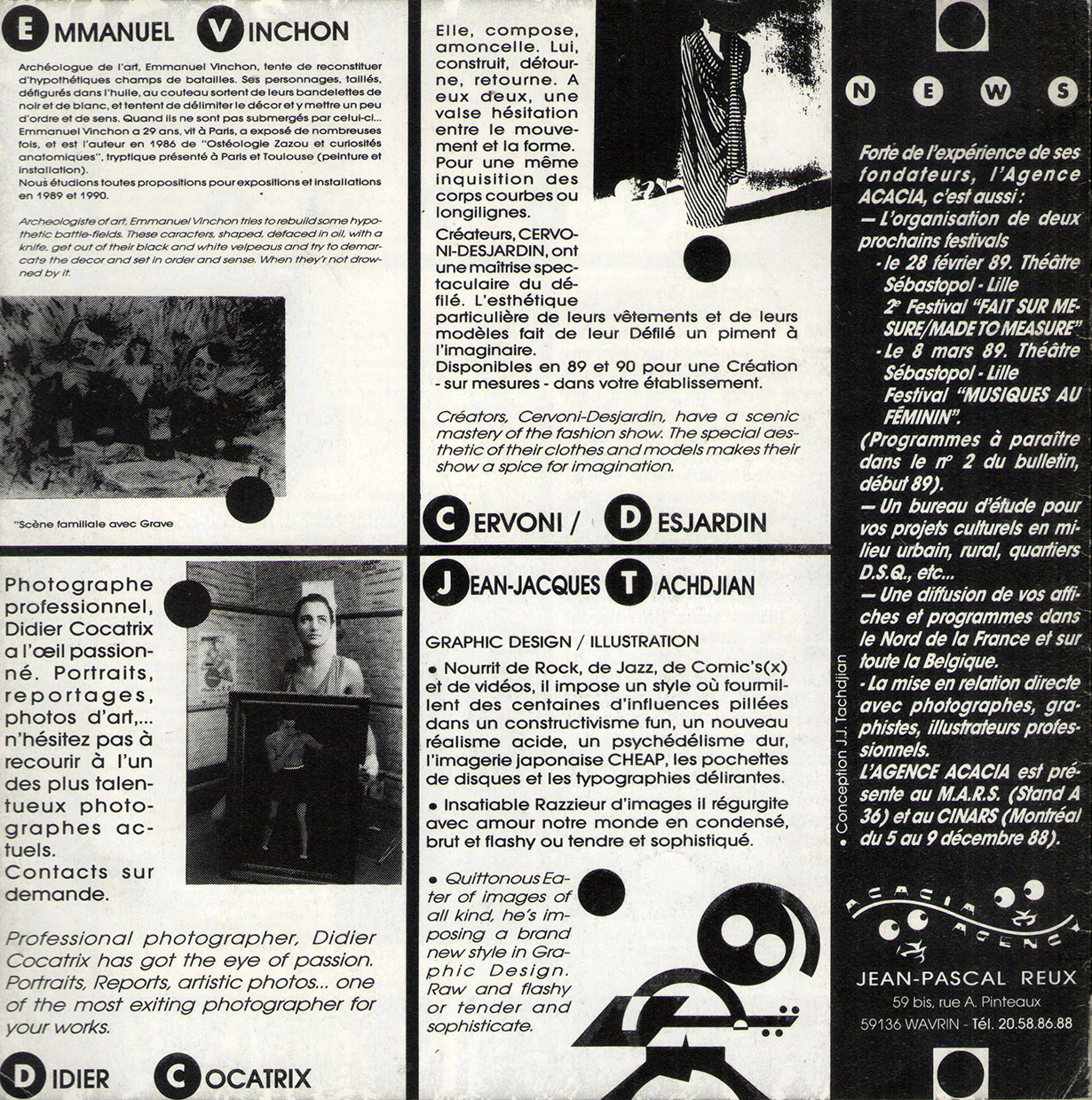 Carré 20 x 20 cm 4 pages → Offset ↪ FR ↪ 59 ↪ Lille Parution en 1988Agence Acacia Numerisation : Oui (300 dpi) Maquette et graphisme El Rotringo Collection privée PLUS MOINS