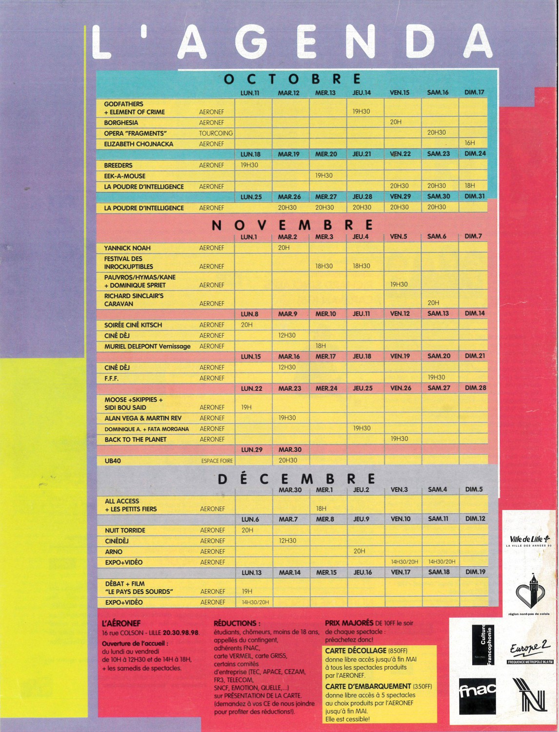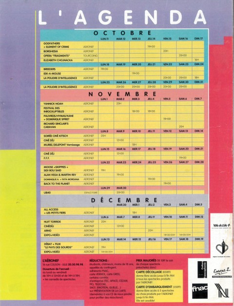 A4 20.5 x 28 cm 6 pages → Offset ↪ FR ↪ 59 ↪ Lille Parution en octobre 1993Programme Octobre Décembre Numerisation : Oui (300 dpi) Collection privée PLUS MOINS