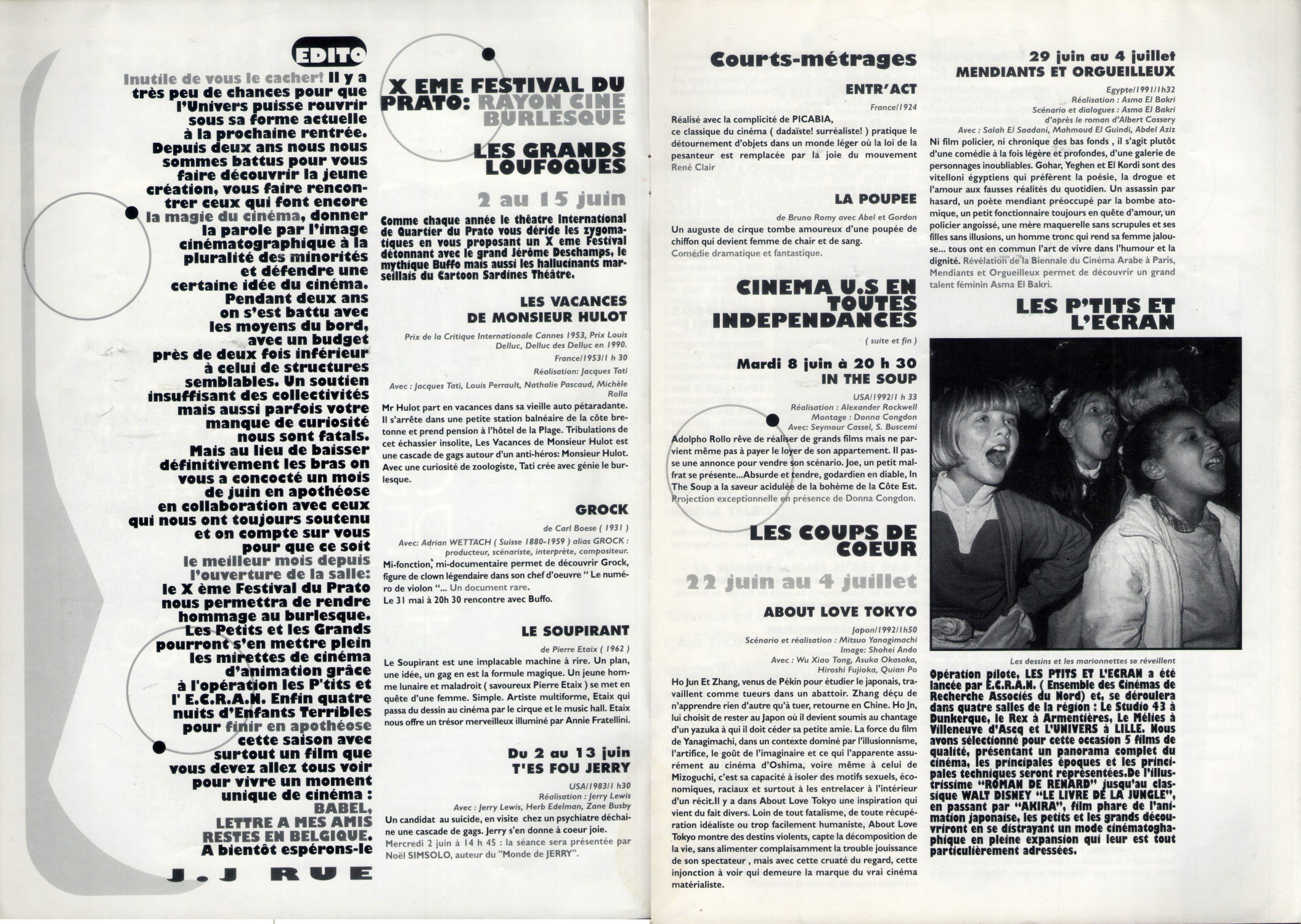A4 20.5 x 28 cm 8 pages → Offset ↪ FR ↪ 59 ↪ Lille Parution en juin 1994Cinéma l'Univers Numerisation : Non Collection privée PLUS MOINS