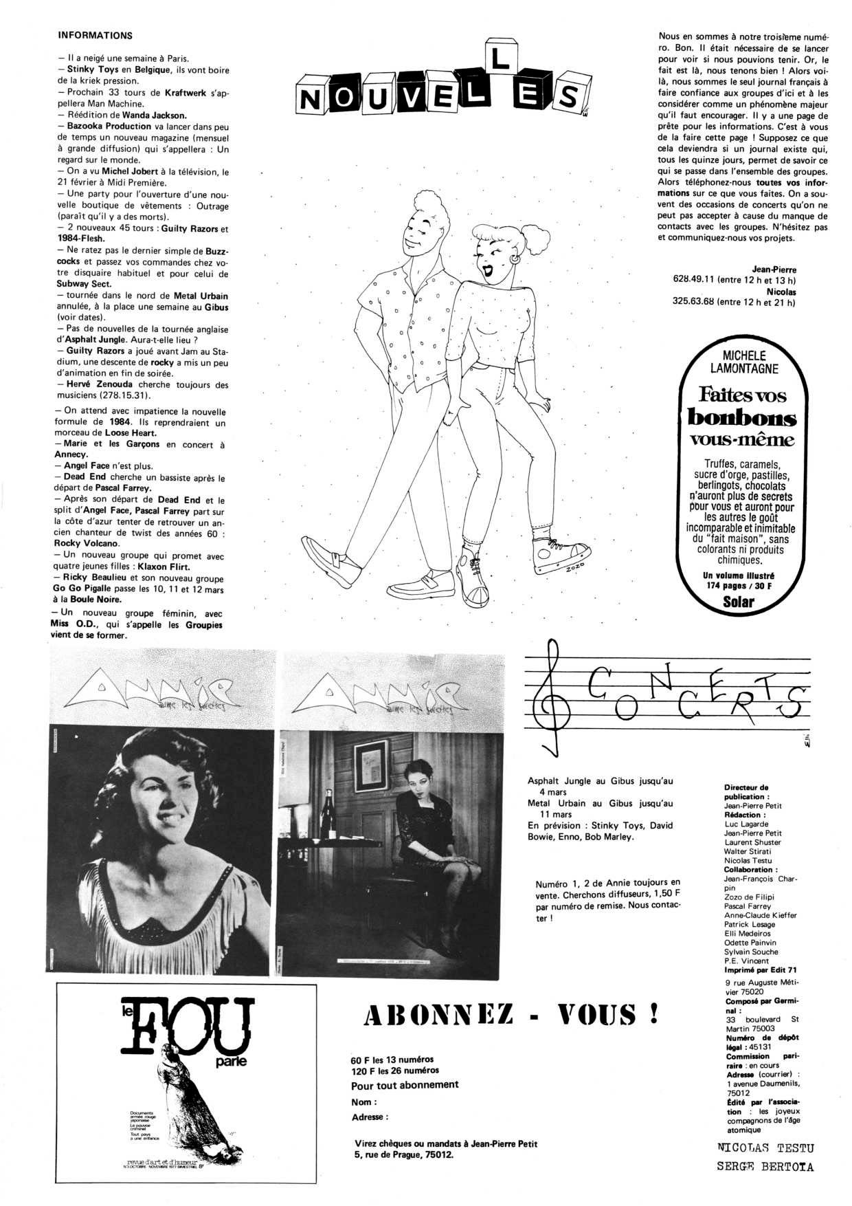 A3 12 pages → Offset ↪ FR ↪ Paris Parution en mars 1978Annie Aime Les Sucettes n°3 Numerisation : Oui (150 dpi) En ligne sur Archives du Punk PLUS MOINS