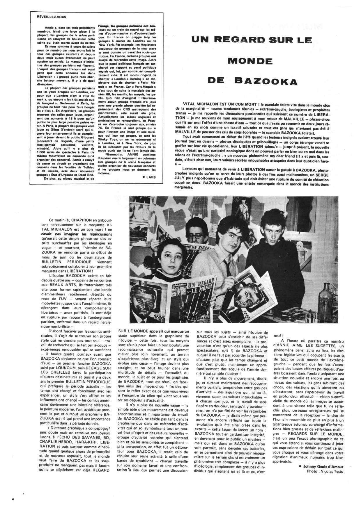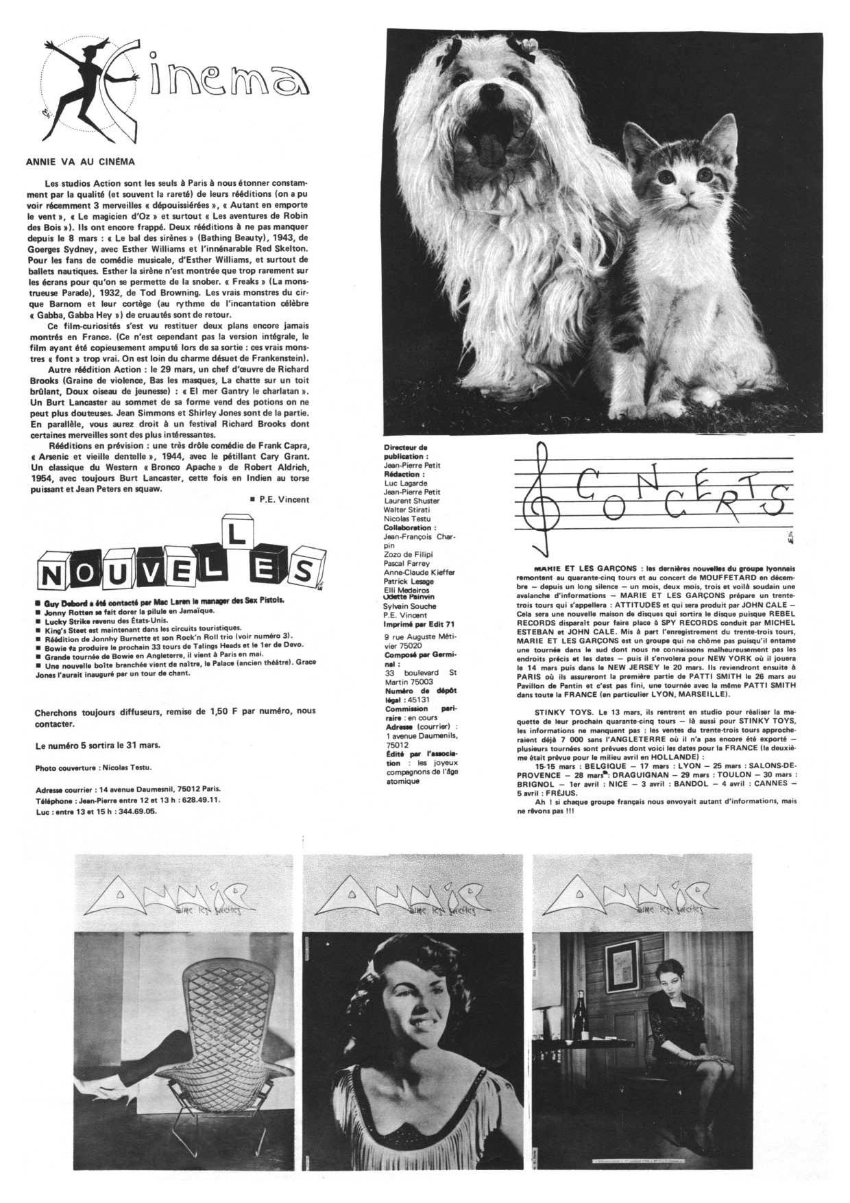 A3 12 pages → Offset ↪ FR ↪ Paris Parution en mars 1978Annie Aime Les Sucettes n°4 Numerisation : Oui (150 dpi) En ligne sur Archives du Punk PLUS MOINS