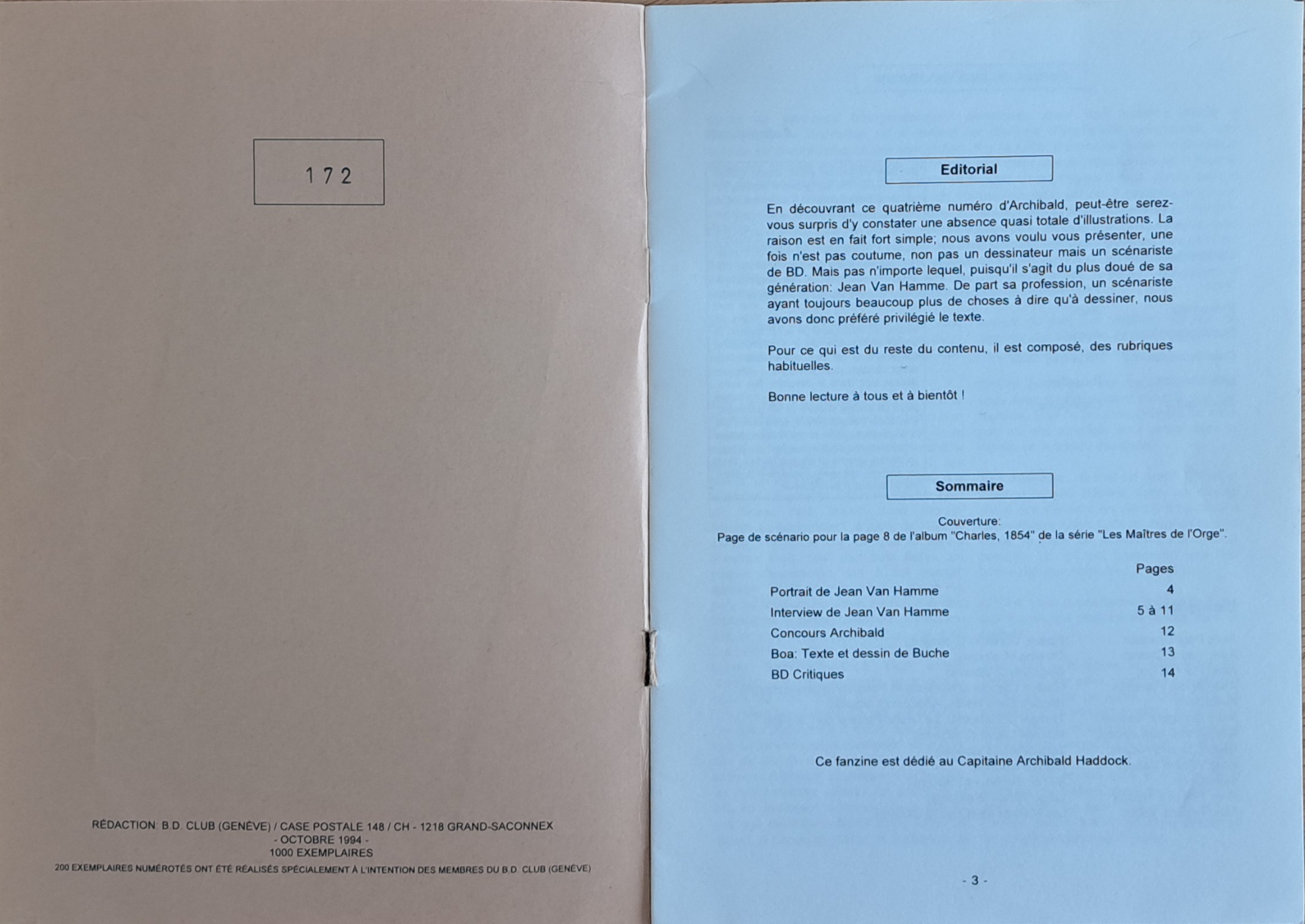 A5 16 pages → Offset ↪ CH ↪ Genève Parution en octobre 1994Archibald n°4 Numerisation : Non Collection privée PLUS MOINS