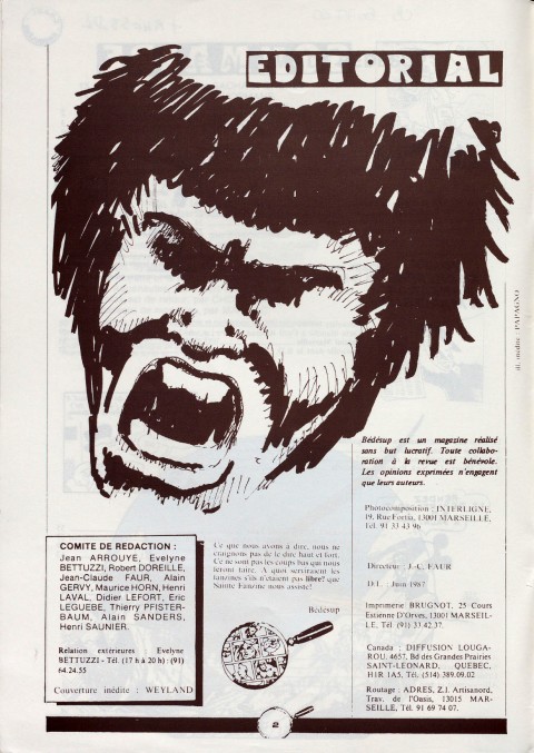 A4 84 pages → Offset ↪ FR ↪ 13 ↪ Marseille Parution en janvier 1987Bédésup n°40-41 Numerisation : Oui (150 dpi) En ligne sur Media BD (réservé aux chercheurs) PLUS MOINS