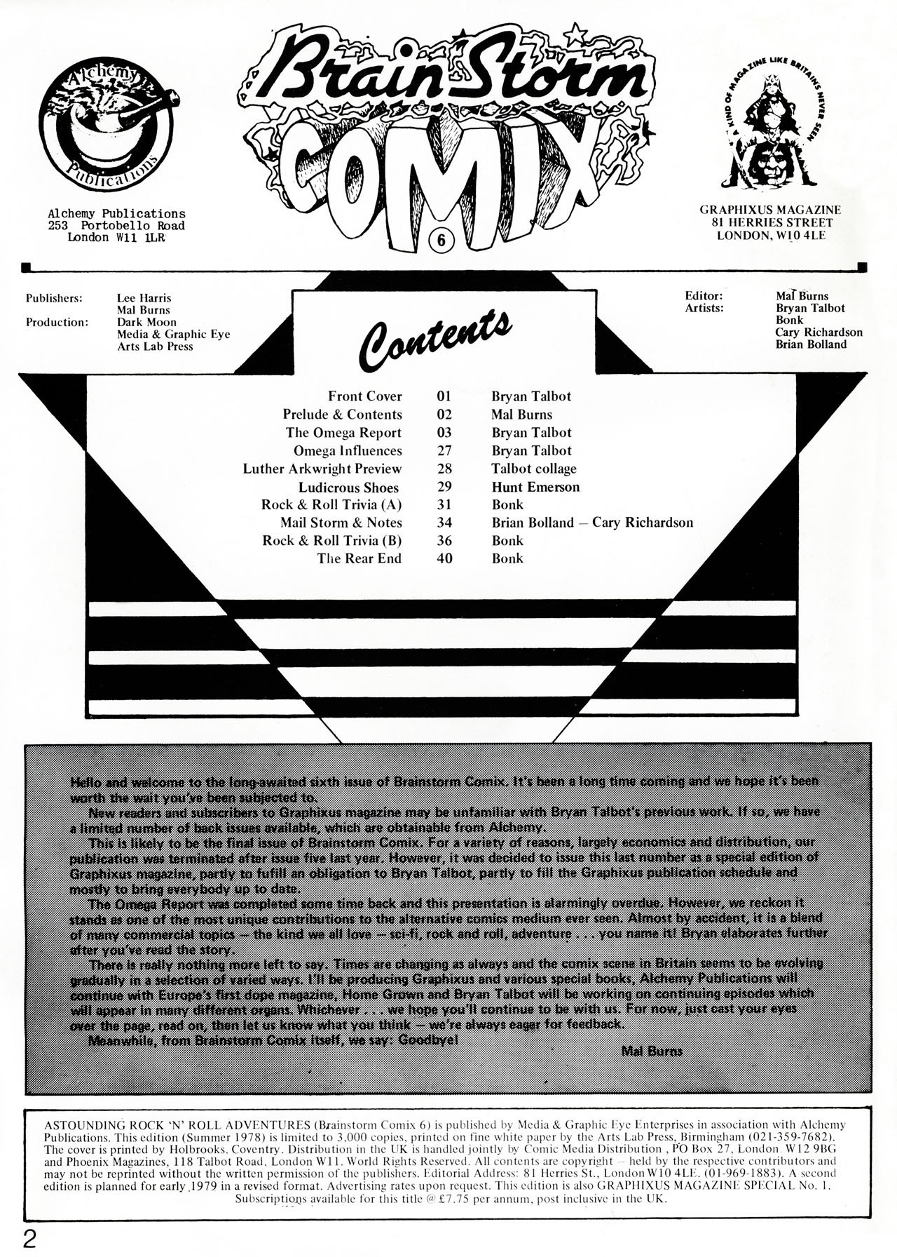 Comic 40 pages → Offset 3000 exemplaires ↪ GB ↪ Londres Parution en 1978BrainStorm Comix Vol.2 n°2 Numerisation : Oui (150 dpi) En ligne sur archive.org PLUS MOINS