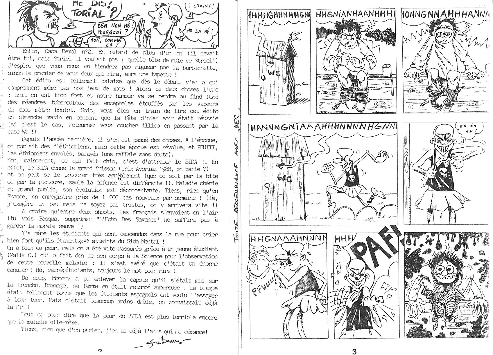 A5 16 pages → Photocopie NB ↪ FR ↪ 79 ↪ Saint Maixent Parution en avril 1987Caca Bémol n°2 par : Bouzard (Guillaume) Auto édition Numerisation : Oui (300 dpi) Collection privée PLUS MOINS