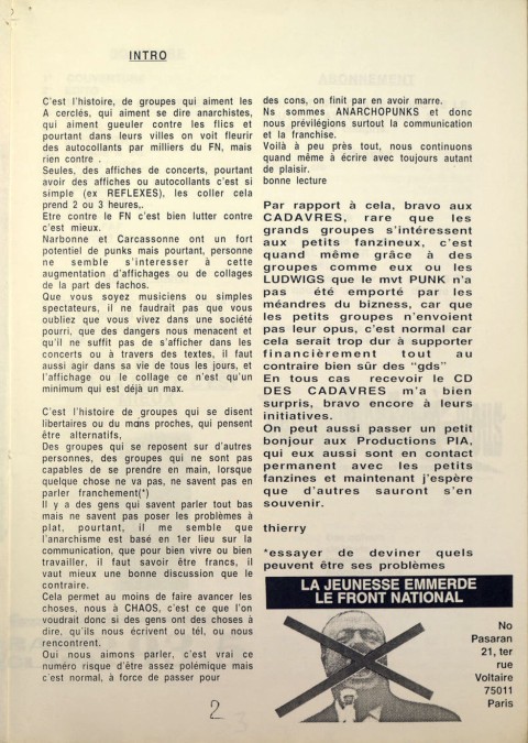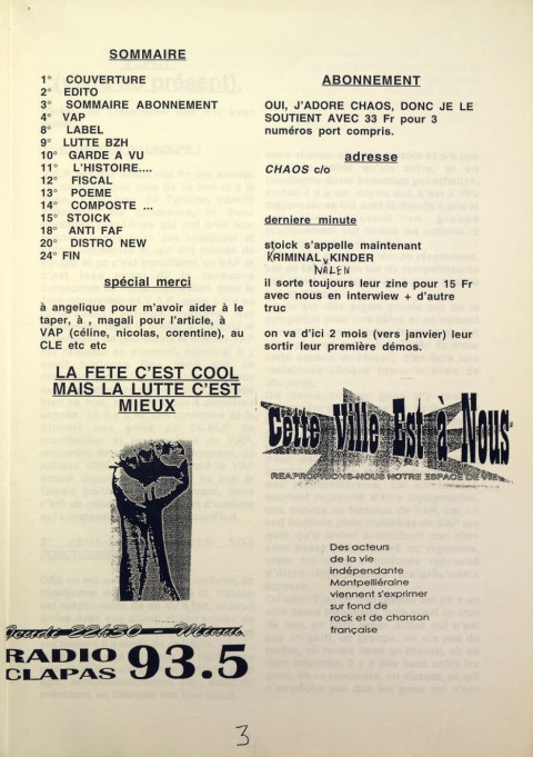 A4 48 pages → Photocopie NB ↪ FR ↪ 11 ↪ Carcassonne Parution en novembre 1996Chaos n°8 Numerisation : Oui (150 dpi) En ligne sur Fanzinothèque.fr PLUS MOINS