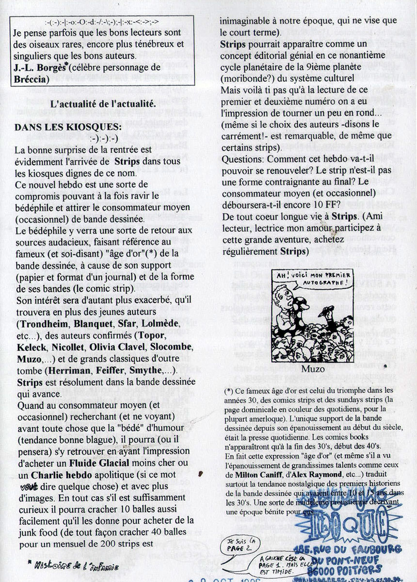 4 pages ↪ FR Parution en 1996Divers (1996-1997) Numerisation : Oui (300 dpi) Collection privée PLUS MOINS
