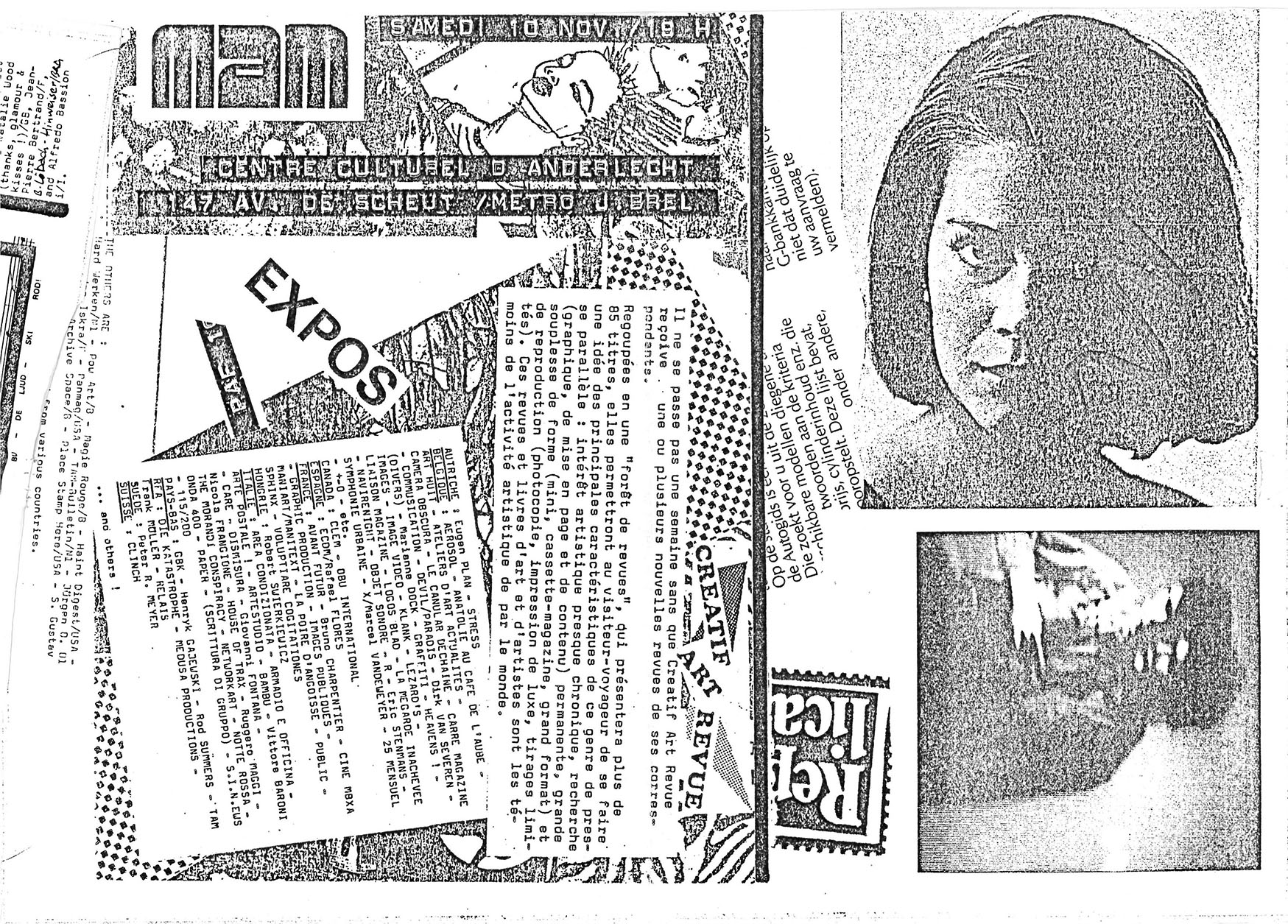 A4 4 pages → Photocopie NB ↪ B ↪ Bruxelles Parution en octobre 1984Créatif Art n°8 Numerisation : Oui (300 dpi) Collection Fanzinothèque de Poitiers PLUS MOINS