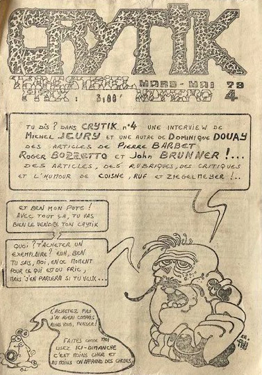 A4 40 pages → Ronéotype ↪ FR ↪ 54 ↪ Vandoeuvre Parution en mars 1979Crytik n°4 Numerisation : Non En recherche PLUS MOINS