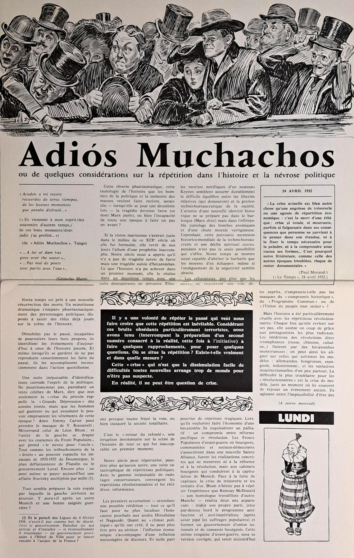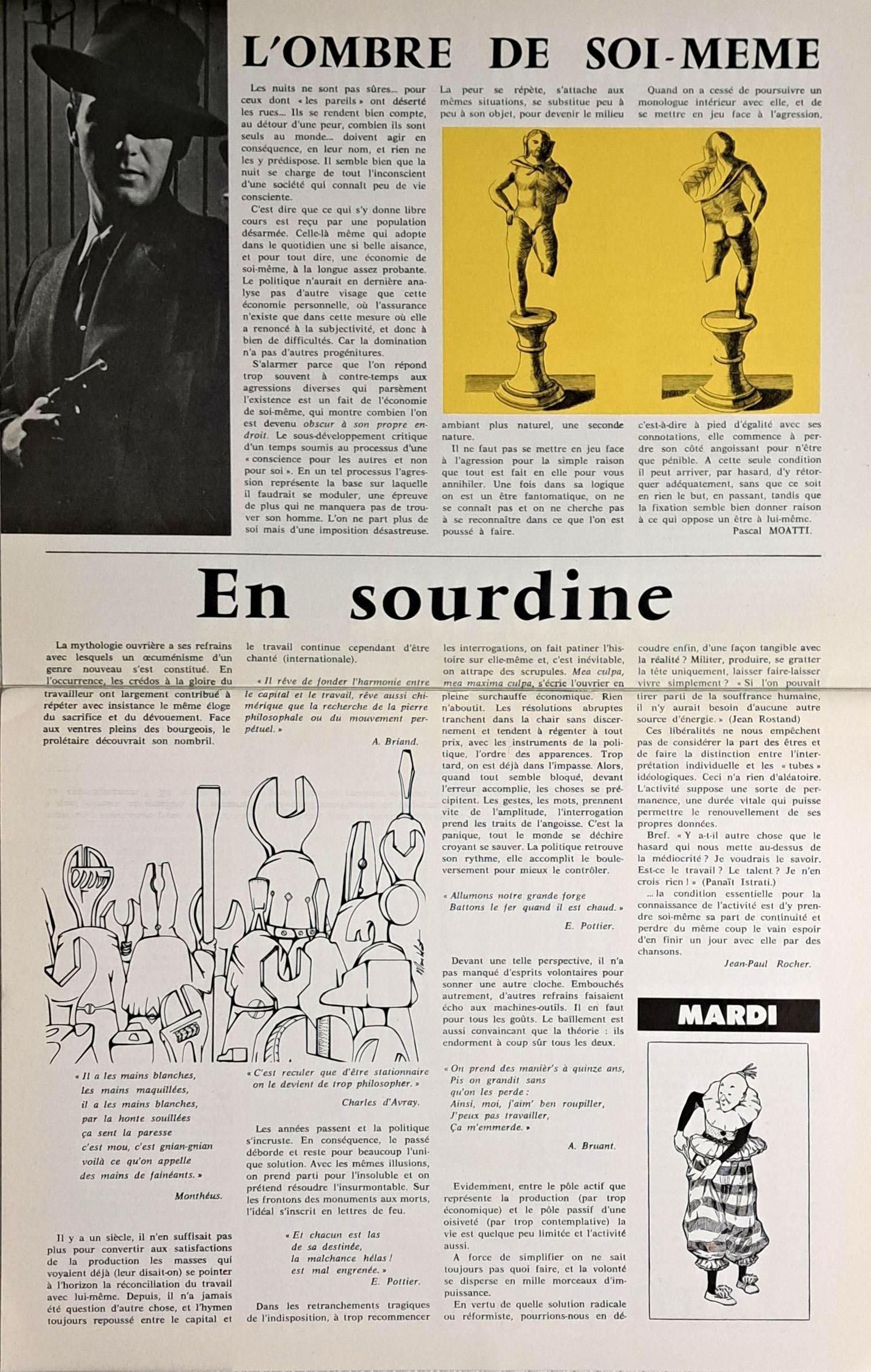 A4 22 x 29 cm 16 pages → Offset ↪ FR ↪ Paris Parution en mars 1977Errata n°11 Numerisation : Oui (150 dpi) Collection privée PLUS MOINS