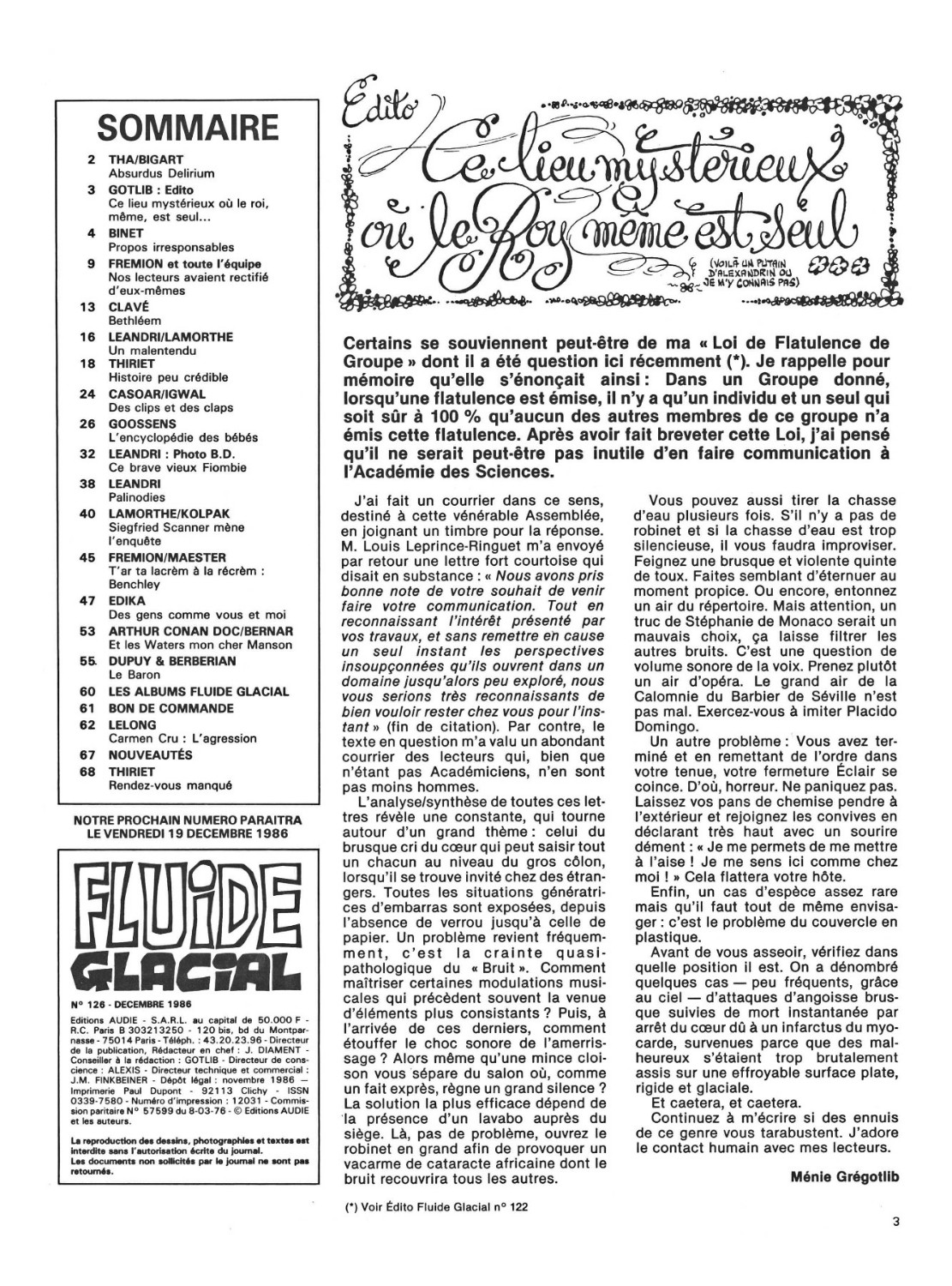 22 x 28.5 cm 68 pages → Offset ↪ FR Parution en decembre 1986Fluide Glacial n°126 Numerisation : Oui (150 dpi) Collection privée PLUS MOINS