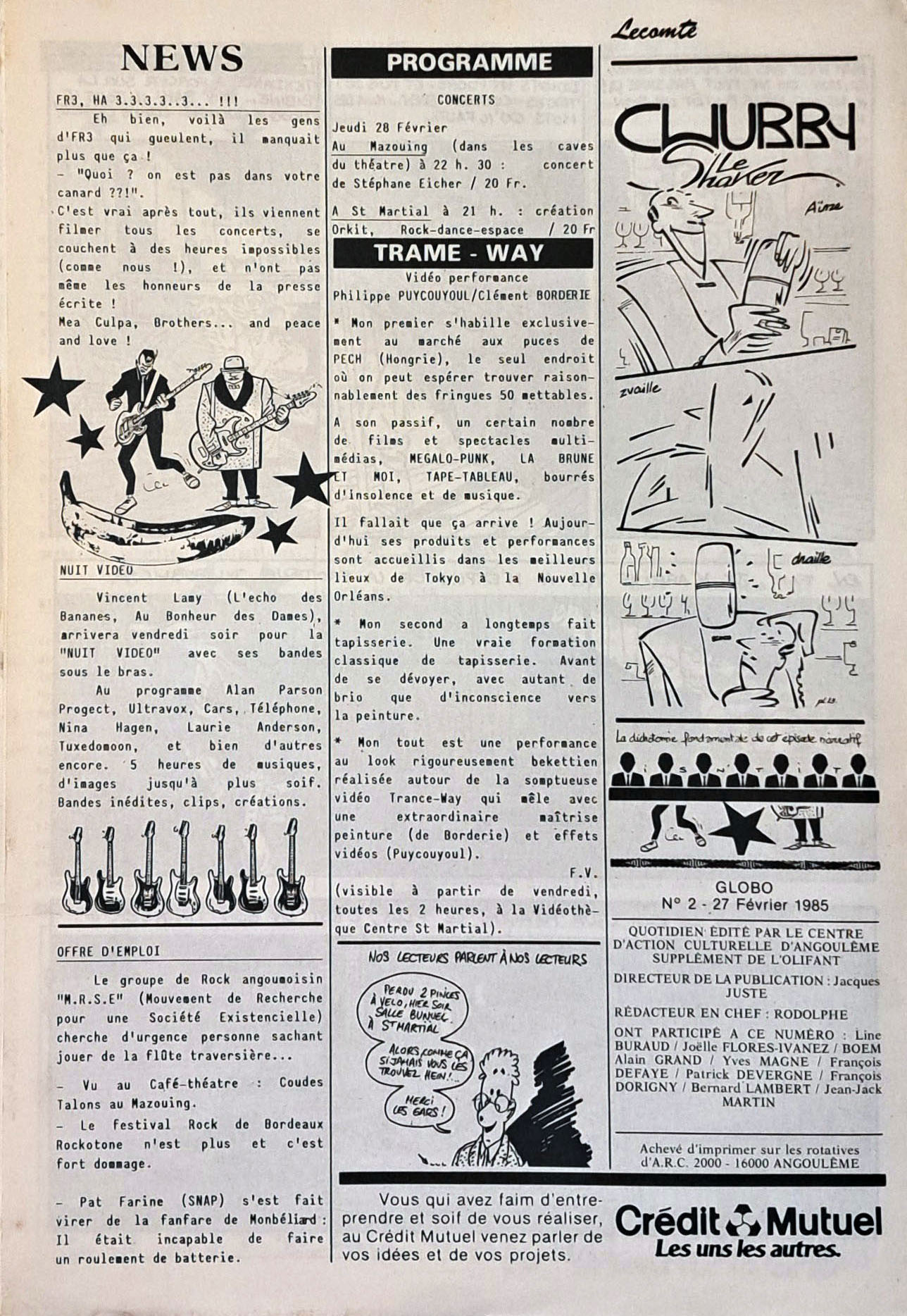 A4 8 pages → Offset ↪ FR ↪ 16 ↪ Angoulême Parution en fevrier 1985Globo n°3 Numerisation : Oui (150 dpi) Collection privée PLUS MOINS