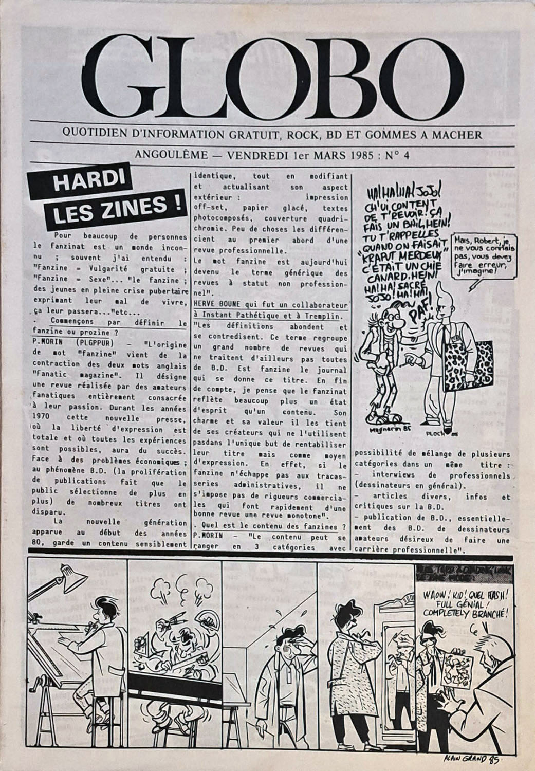 A4 8 pages → Offset ↪ FR ↪ 16 ↪ Angoulême Parution en mars 1985Globo n°4 Numerisation : Oui (150 dpi) Collection privée PLUS MOINS