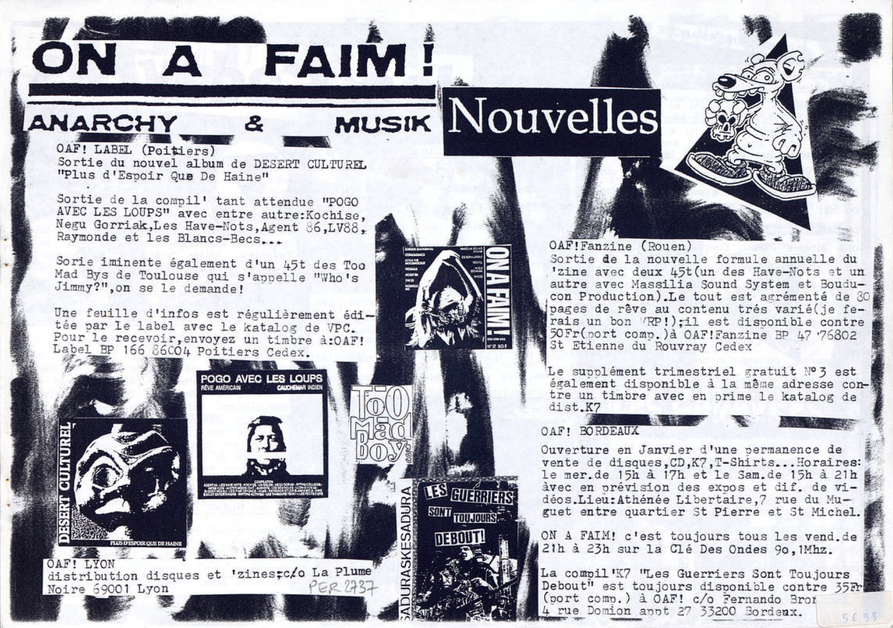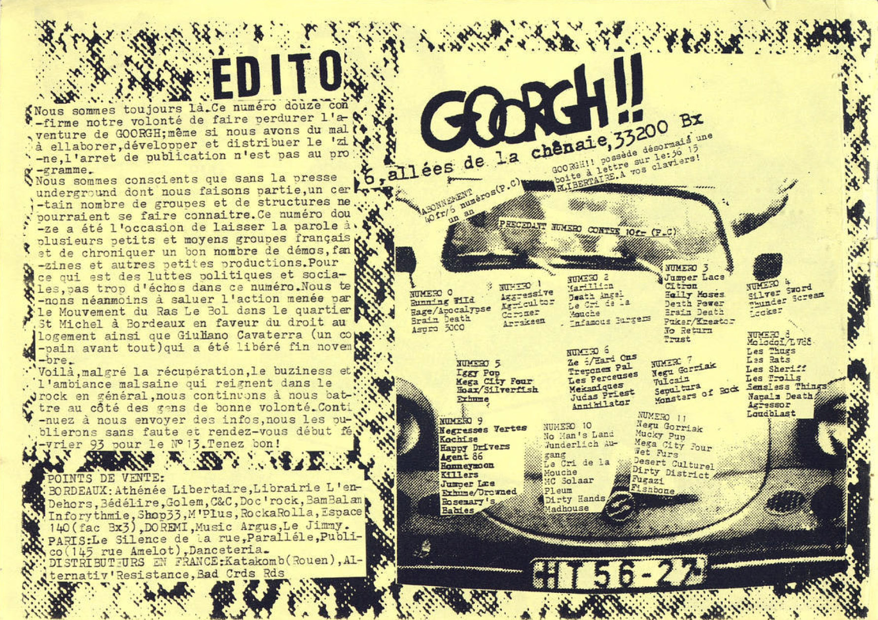 A4 22 pages → Photocopie NB ↪ FR ↪ 33 ↪ Bordeaux Parution en decembre 1992Goorgh n°12 Numerisation : Oui (150 dpi) En ligne sur Fanzinothèque.fr PLUS MOINS