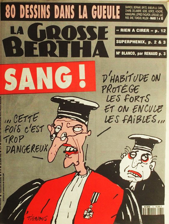 32 x 41 cm 12 pages → Offset ↪ FR ↪ Paris Parution en juin 1992Grosse Bertha n°74 Numerisation : Non Cover Tignous PLUS MOINS