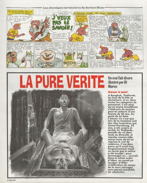 32 x 37 cm 16 pages → Offset ↪ FR Parution en fevrier 1993Hara Kiri Hebdo n°7 Numerisation : Oui (300 dpi) Collection privée PLUS MOINS