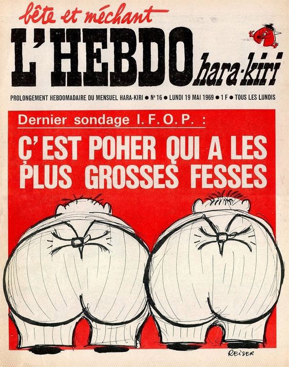 30 x 37 cm 12 pages → Offset ↪ FR ↪ Paris Parution en mai 1969Hebdo Hara Kiri n°16 chez : Editions Du Square Numerisation : Non Cover Reiser PLUS MOINS