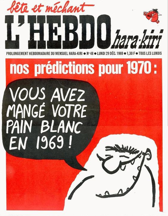 30 x 37 cm 12 pages → Offset ↪ FR ↪ Paris Parution en decembre 1969Hebdo Hara Kiri n°48 chez : Editions Du Square Numerisation : Non Cover Reiser PLUS MOINS