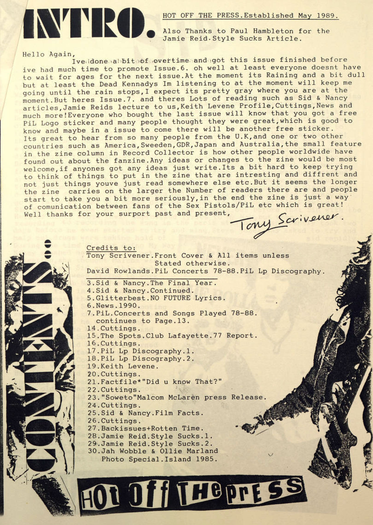 A4 30 pages → Photocopie NB ↪ GB Parution en fevrier 1990Hot Off The Press n°7 Numerisation : Oui (150 dpi) En ligne sur Fanzinothèque.fr PLUS MOINS