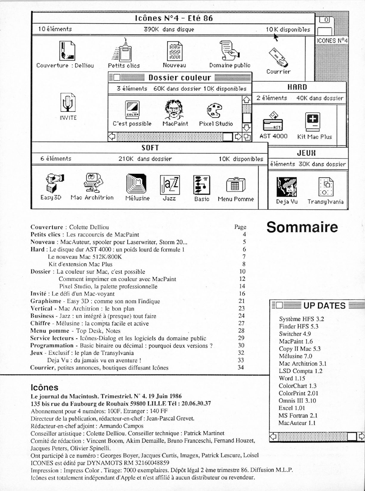 A4 36 pages → Offset ↪ FR ↪ 59 ↪ Lille Parution en juillet 1986Icônes n°4 Numerisation : Oui (150 dpi) En ligne sur archive.org PLUS MOINS