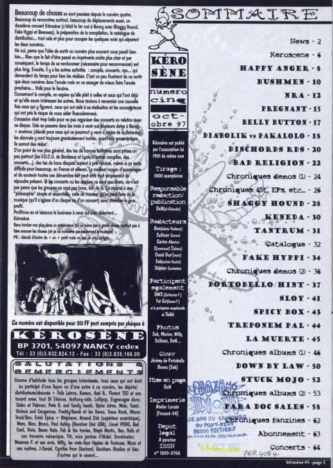 A4 64 pages → Offset ↪ FR ↪ 54 ↪ Nancy Parution en octobre 1997Kerosene n°5 Numerisation : Oui (150 dpi) En ligne sur Fanzinothèque.fr PLUS MOINS