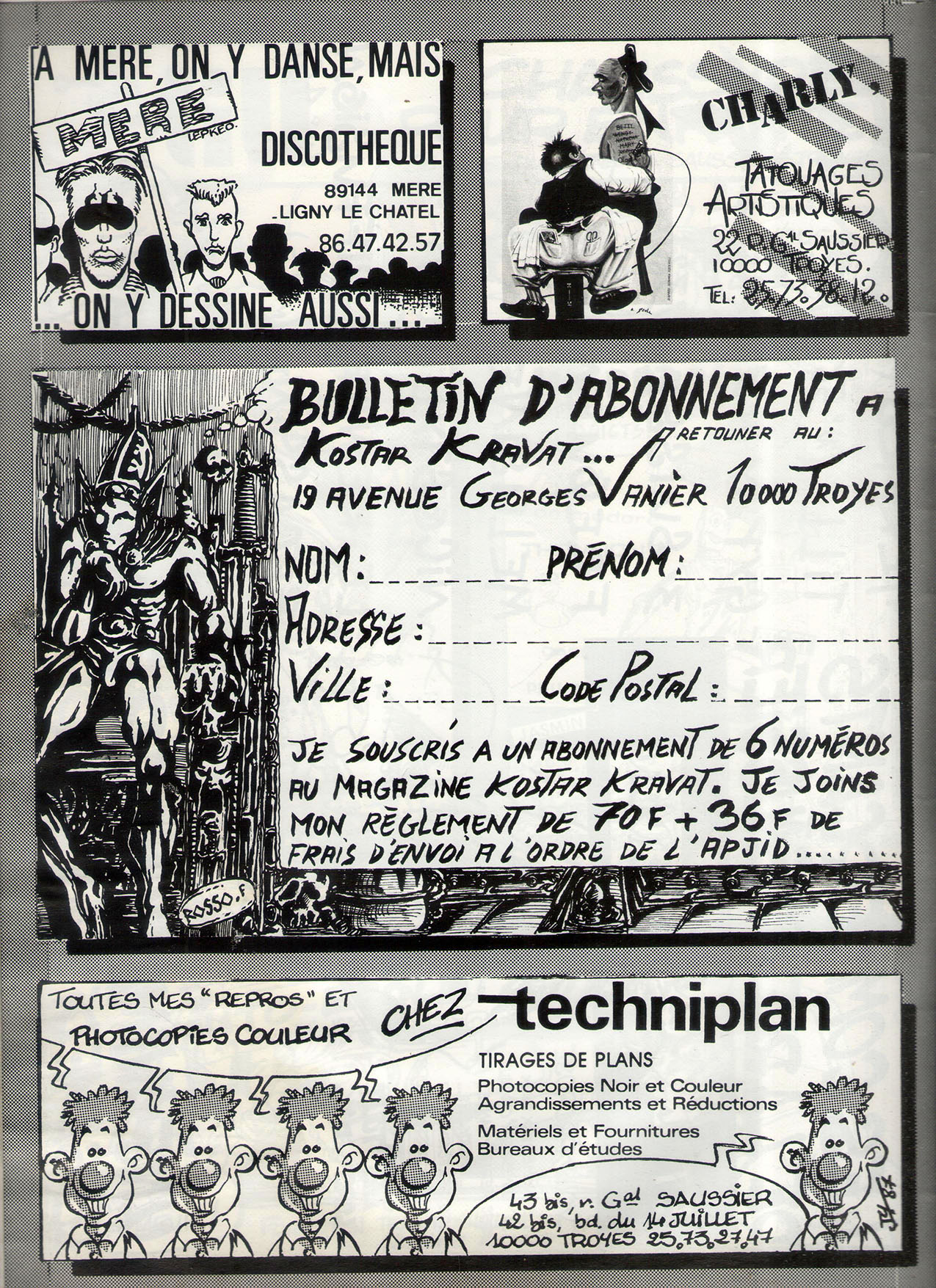 A4 40 pages → Offset ↪ FR ↪ 10 ↪ Troyes Parution en septembre 1987Kostar Kravat n°3 Numerisation : Oui (300 dpi) Collection privée PLUS MOINS