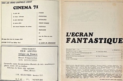 A4 52 pages → Offset ↪ FR Parution en avril 1971L'écran Fantastique 2° série n°2 Numerisation : Non Cover Caza - En recherche PLUS MOINS