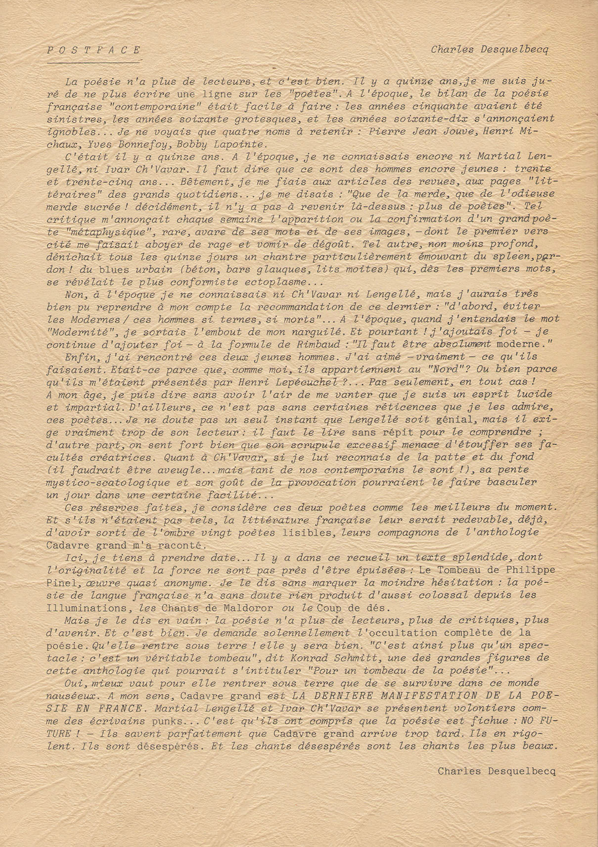 A4 → Offset ↪ FR ↪ 80 ↪ Amiens Parution en janvier 1986Cadavre Grand m'A Raconté par : Ch'vavar (Ivar) Numerisation : Oui (150 dpi) Collection privée PLUS MOINS