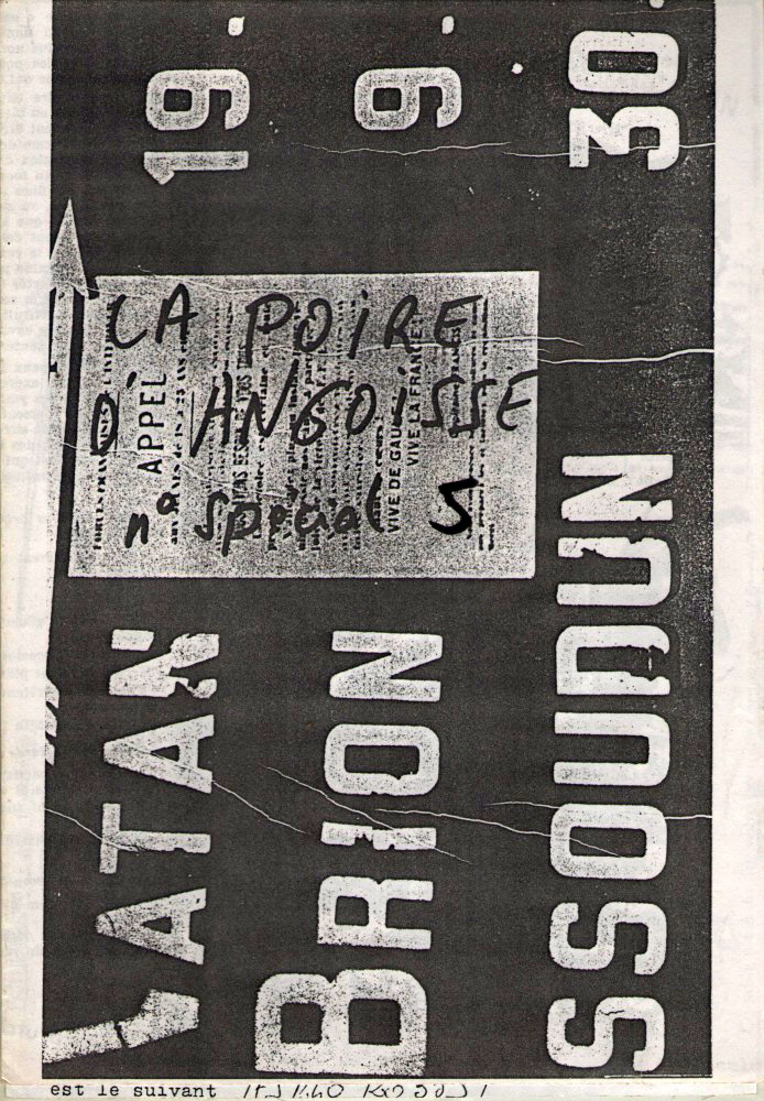 A5 → Photocopie NB ↪ FR ↪ 24 ↪ Périgueux Parution en septembre 1984La Poire D'Angoisse n°5 chez : Moulinier (Didier) Numerisation : Non En recherche PLUS MOINS