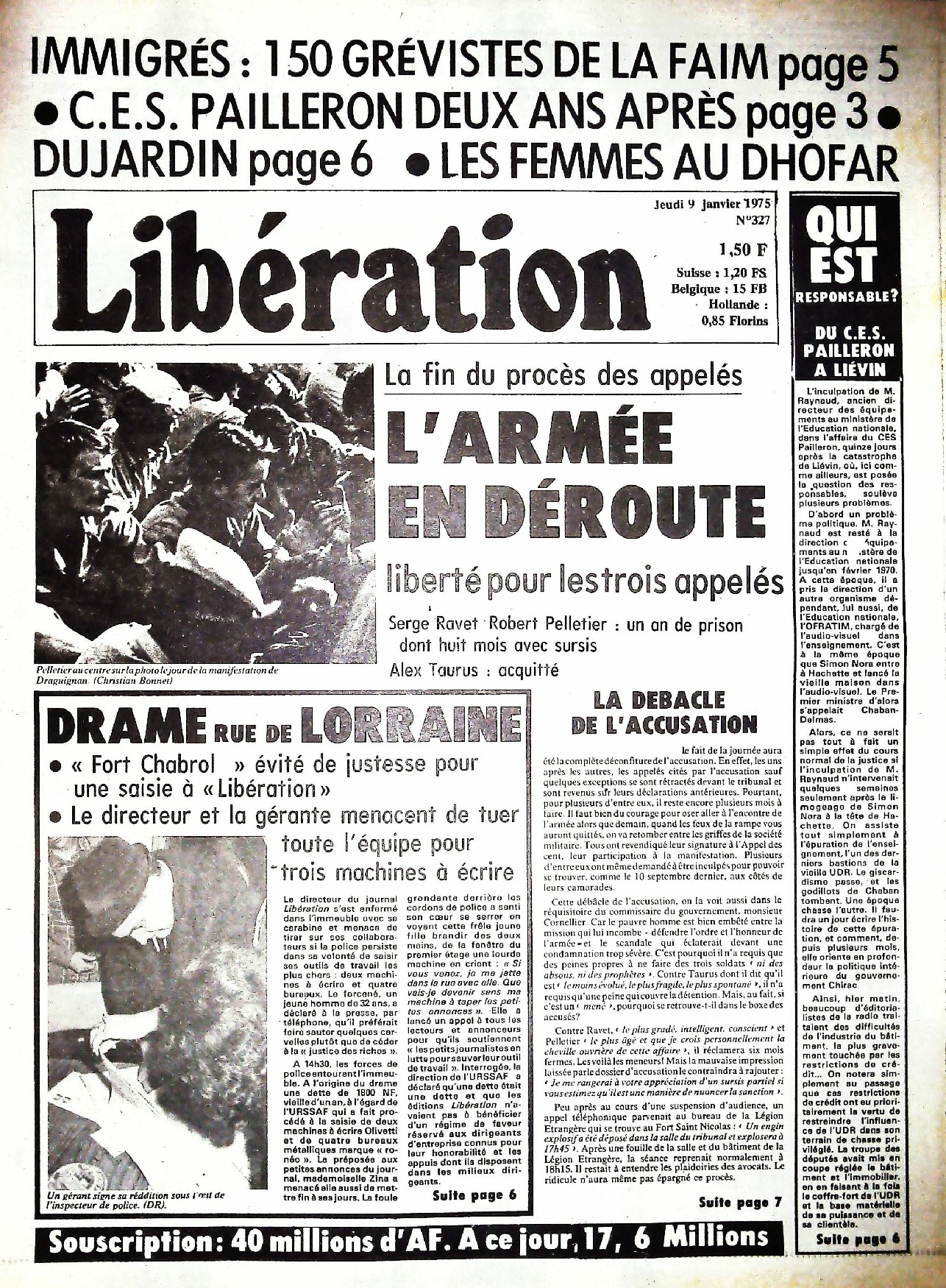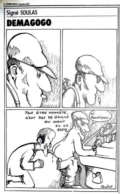 29 x 41 cm 12 pages → Offset ↪ FR Parution en janvier 1975Libération n°327 chez : Libération Numerisation : Oui (150 dpi) Collection privée PLUS MOINS