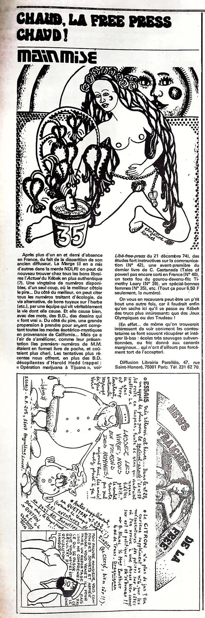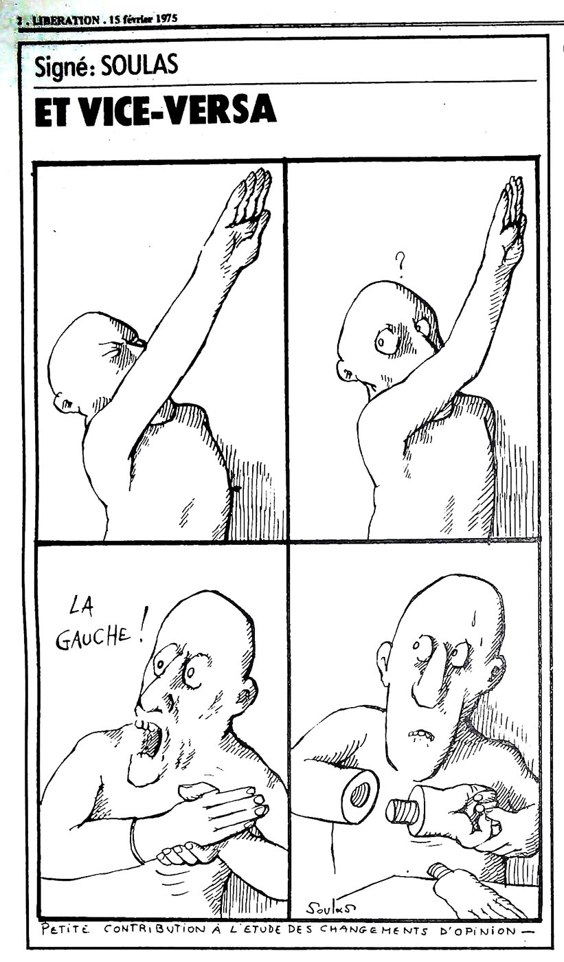 29 x 41 cm 12 pages → Offset ↪ FR Parution en fevrier 1975Libération n°359 chez : Libération Numerisation : Oui (150 dpi) Collection privée PLUS MOINS